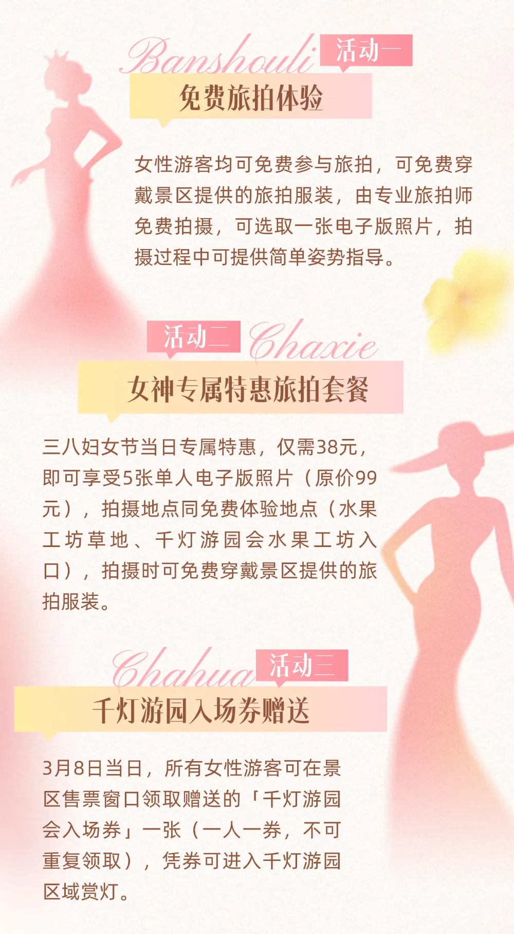 当前位置:首页>美女资讯>春风十里,不如大溪岭有你!女神节专属福利上线!