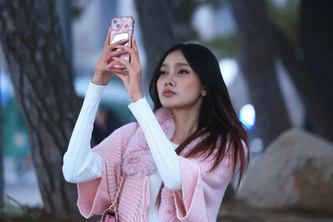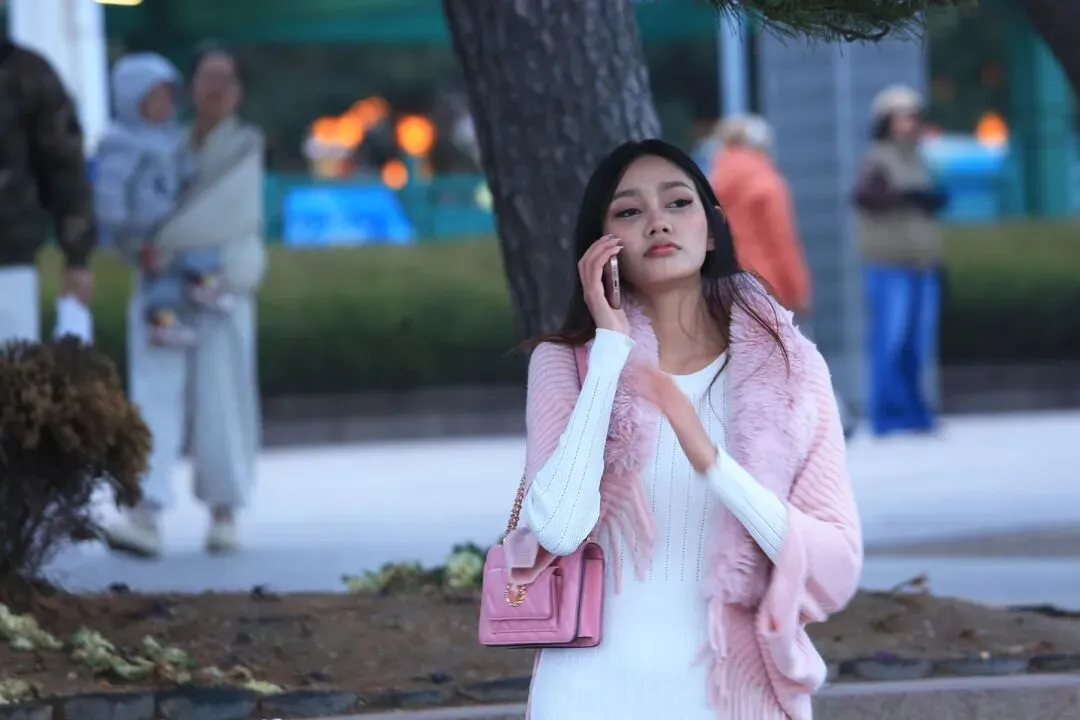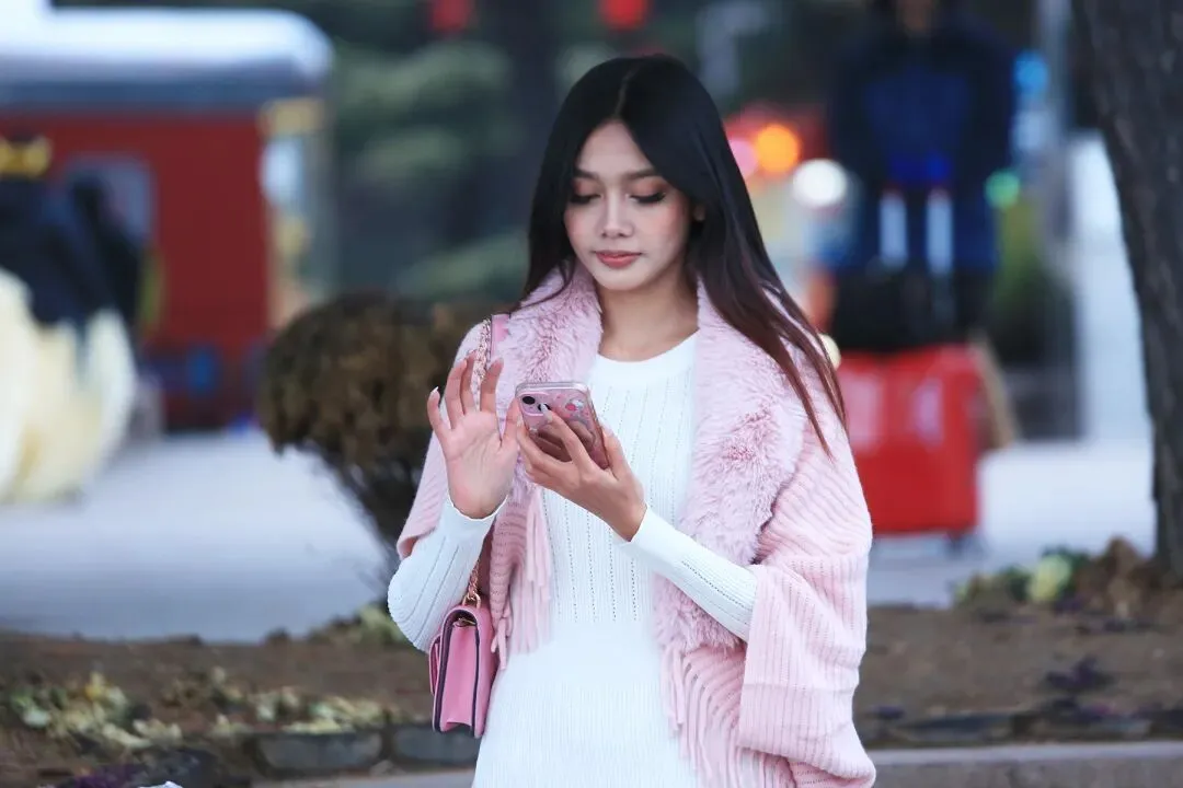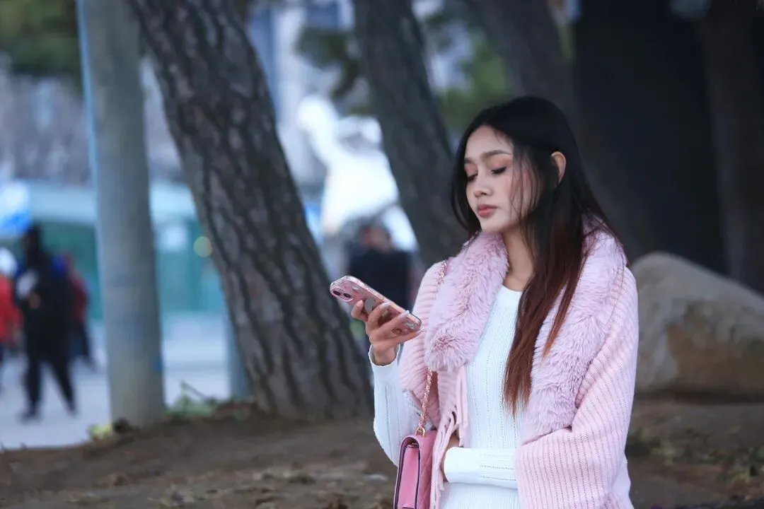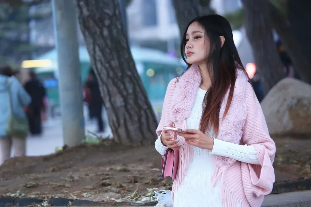 3月4日,去大学路美术馆拍兰花展,结束之后漫步走在前海一线,想一路边走边拍。走到栈桥路口,偶遇一小美女用很蹩脚的普通话,向我打听看没看到她的朋友?我先是一愣,后来才反应过来,她见我是胸前挂着相机的人,就误以为我是给她的两位同伴拍照的摄影师。我问她是哪里人?她回答是缅甸人,我问她是做什么工作的?她答是模特演员。我说你就在这等你的朋友,我在这里正好给你拍点肖像。你的朋友路过这里就会来找你,你该打电话打电话,两不耽误。就这样在她打电话的同时,我为她拍下了这组照片。