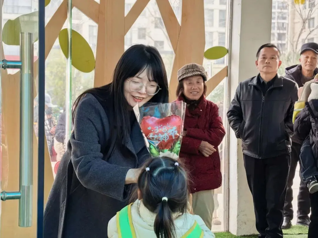 孩子们手捧精心准备的气球花,送到妈妈、奶奶、外婆等女性长辈手中,一句句稚嫩的“女神节快乐”“我爱你”,瞬间融化了在场每一位家长的心。小小的花朵,承载着最纯粹的爱意与感恩,让这个女神节格外温暖动人。