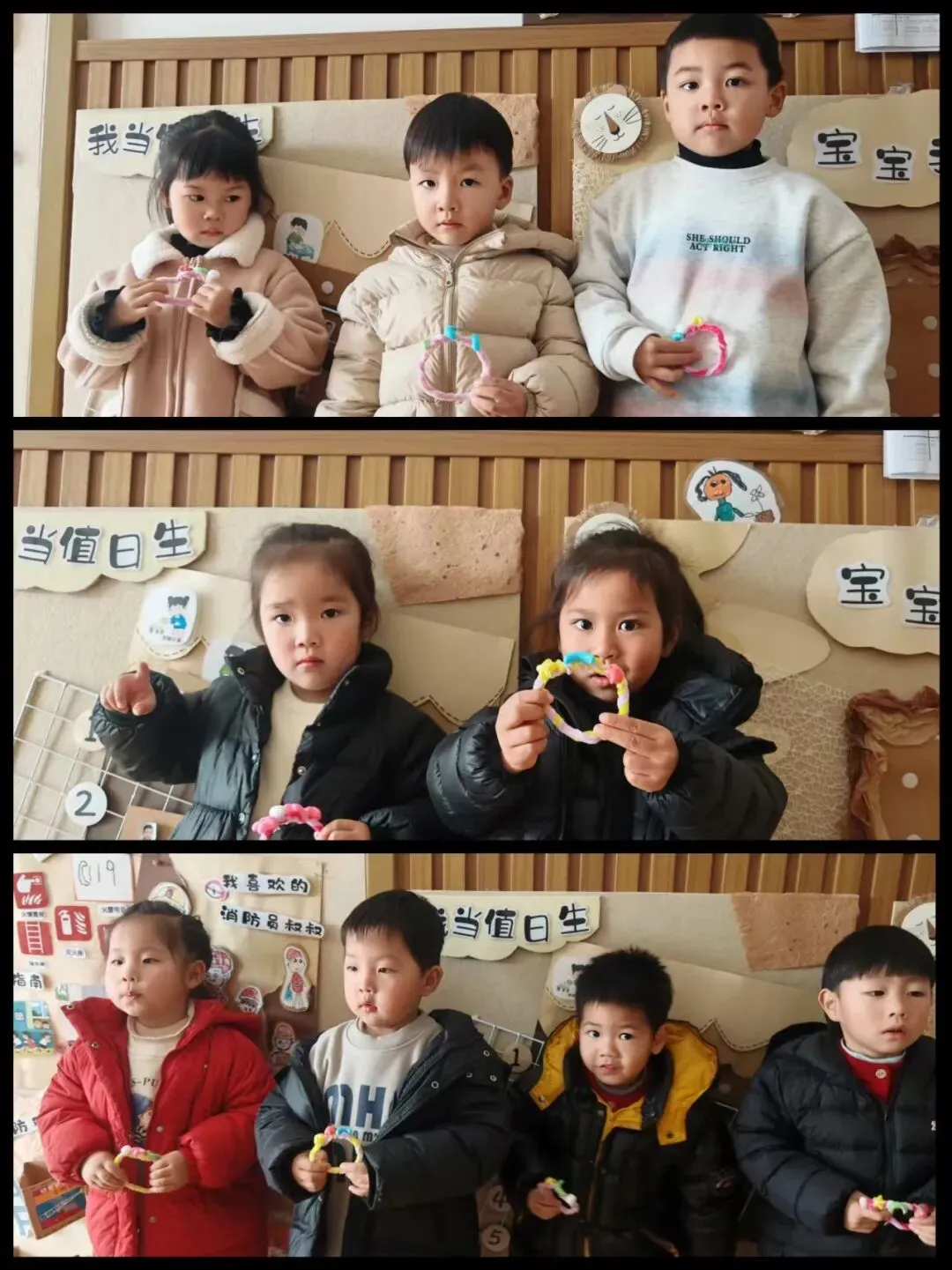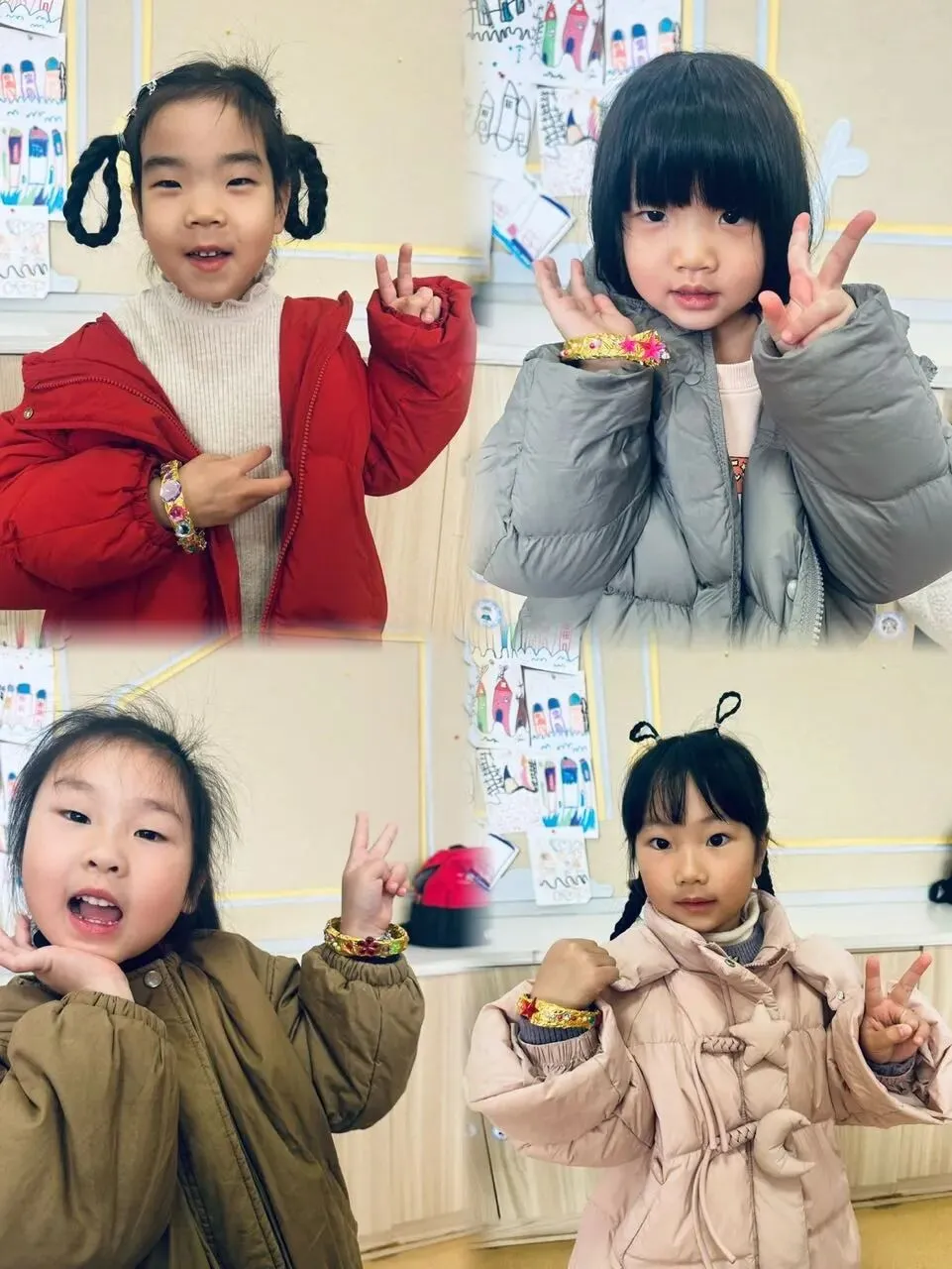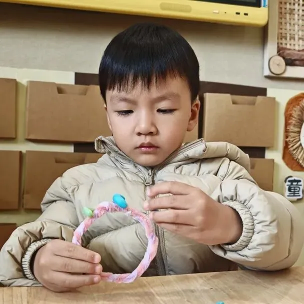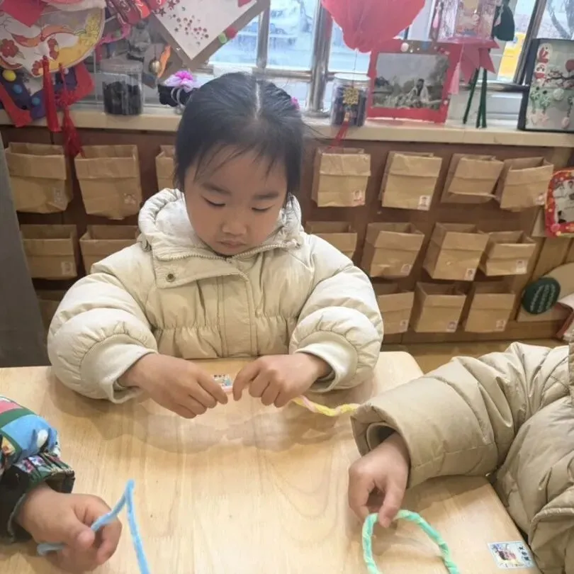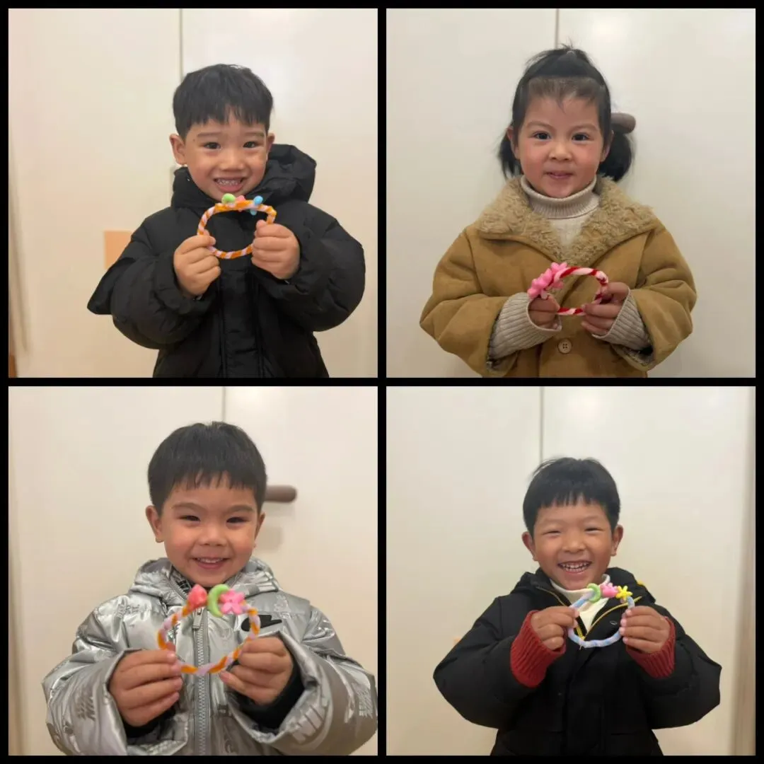 孩子们用五颜六色的扭扭绳和可爱的小花,亲手制作了精美的手环。一双双小手虽然还不太灵活,但那份认真劲儿让人动容。“我要做粉色的,妈妈最喜欢粉色了!”孩子们一边制作,一边兴奋地分享着。一个个充满童趣的手环,承载着孩子们对女神们最纯真的祝福。