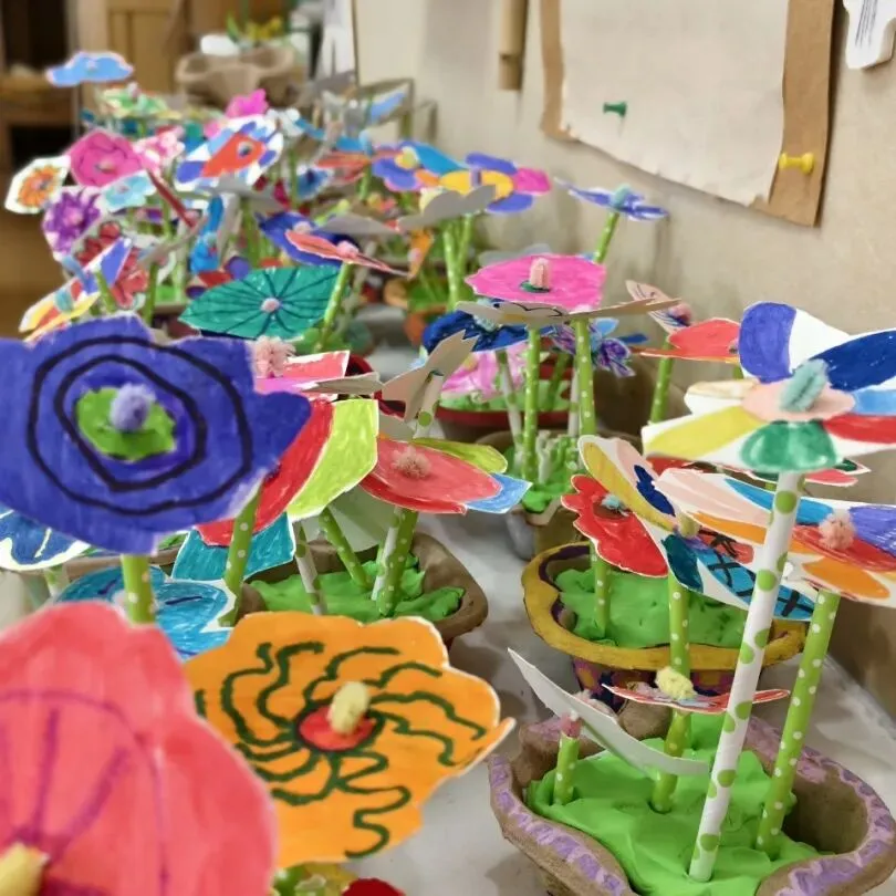 大三班:用轻粘土捏制郁金香,色彩缤纷、造型各异,每一朵都独一无二。