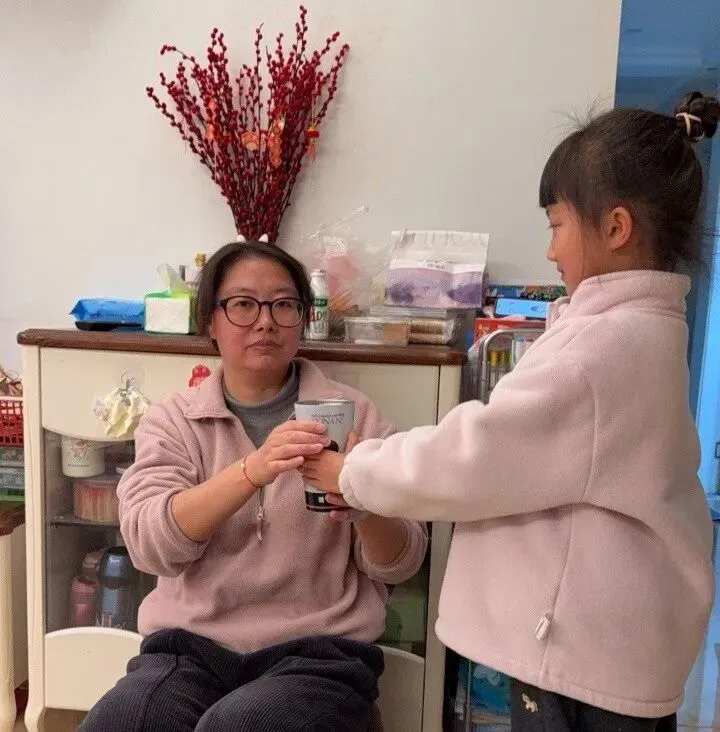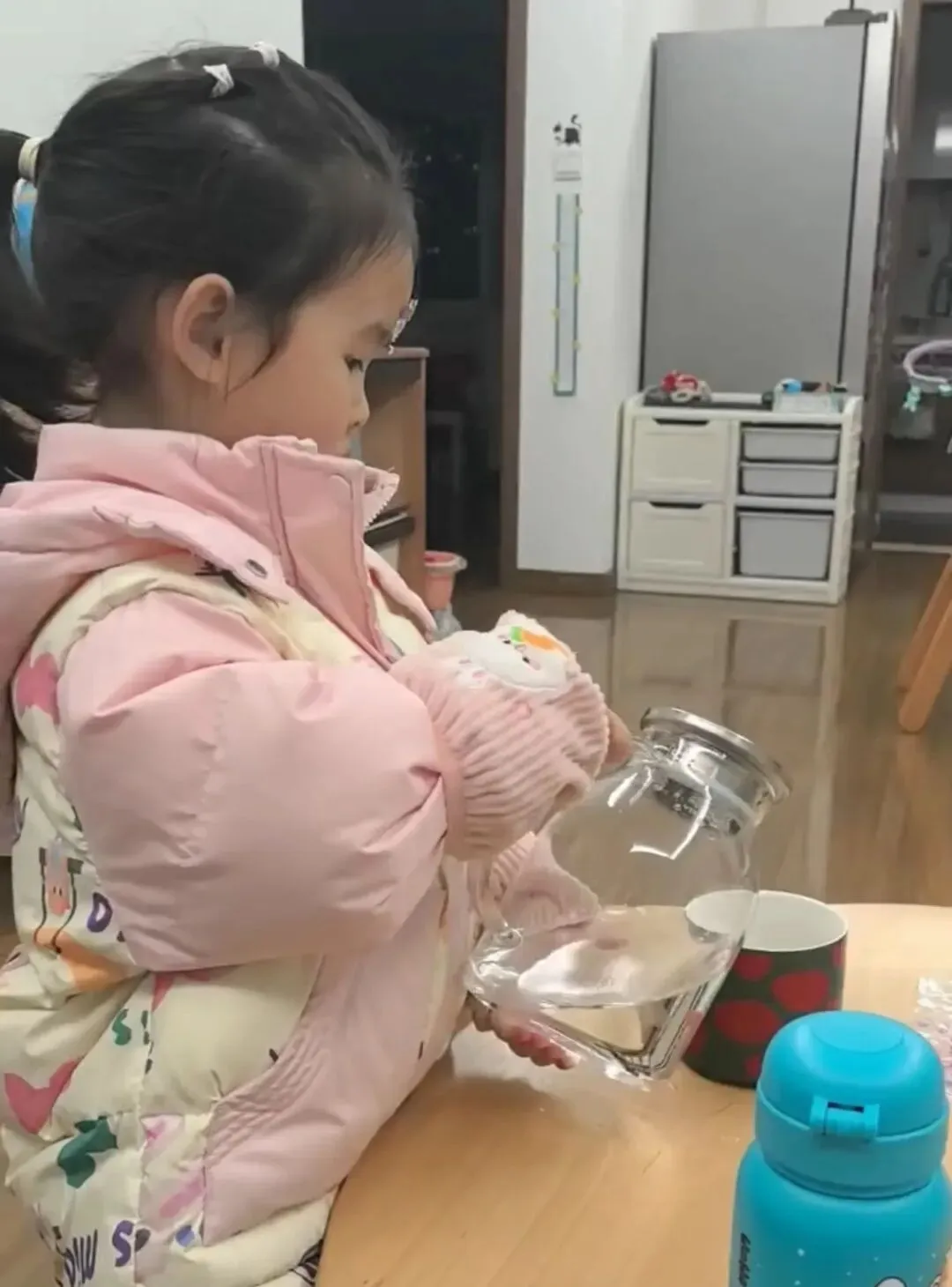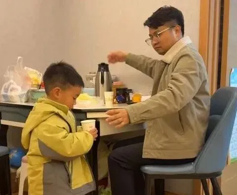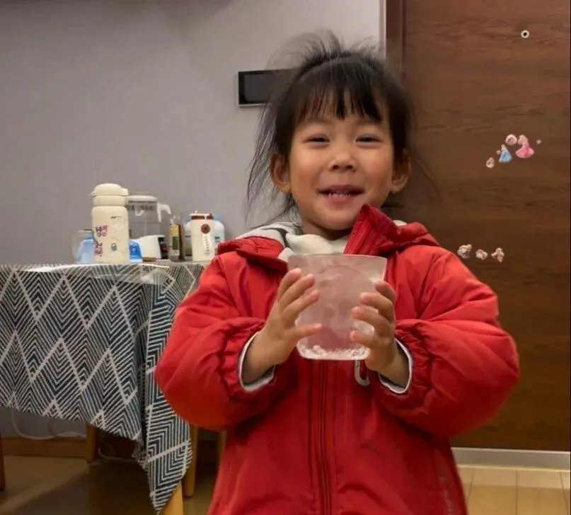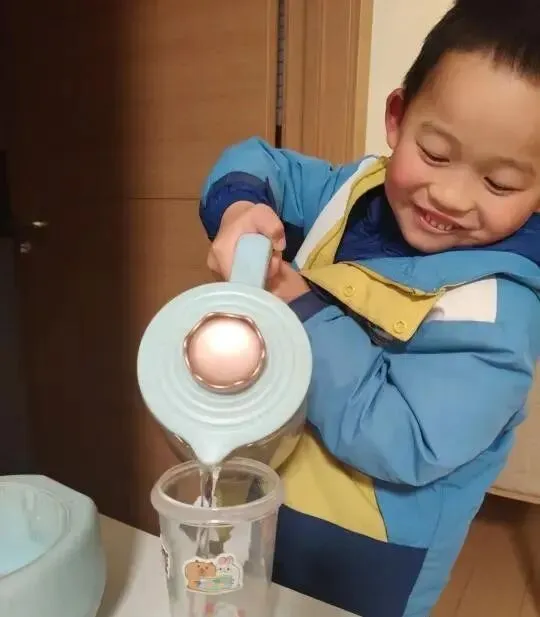 宝贝递上一杯温热的水,