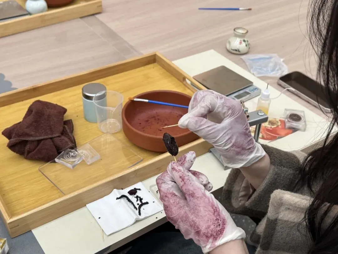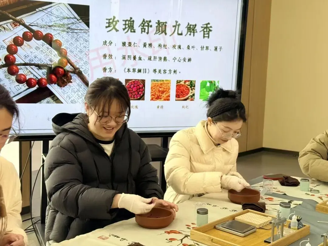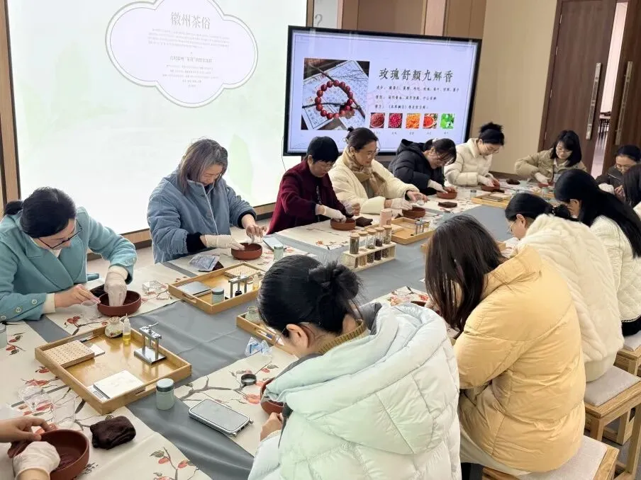 一方中药香牌,是新安医学与传统香艺的完美交融。在老师的指导下,大家精准配比香材、揉制香泥、精心塑形、按压纹样,每一个步骤都一丝不苟。草木香气萦绕鼻尖,治愈又安心,大家在慢节奏的创作中,感受传统香道的独特韵味。