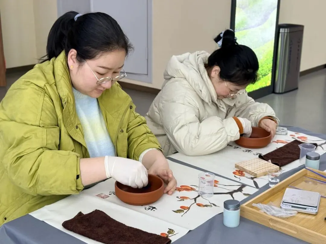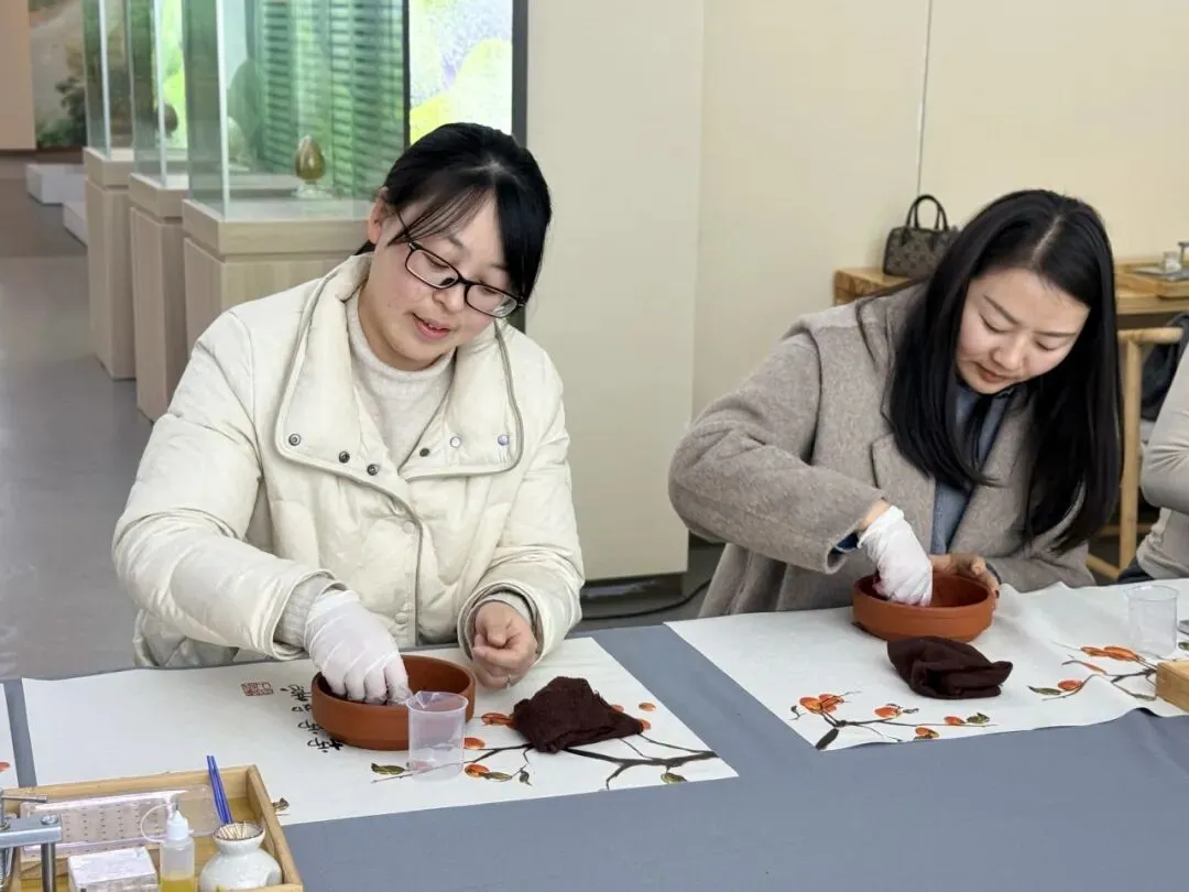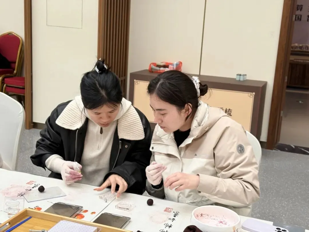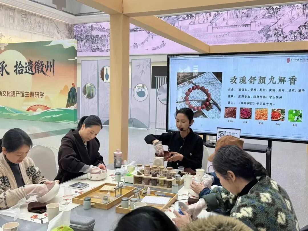 从古朴的非遗器具到精美的手作成品,每一件展品都承载着匠心传承。大家不时驻足拍照、轻声交流,在光影流转间感受徽州非遗的深厚底蕴,为后续的手作体验筑牢文化根基。
