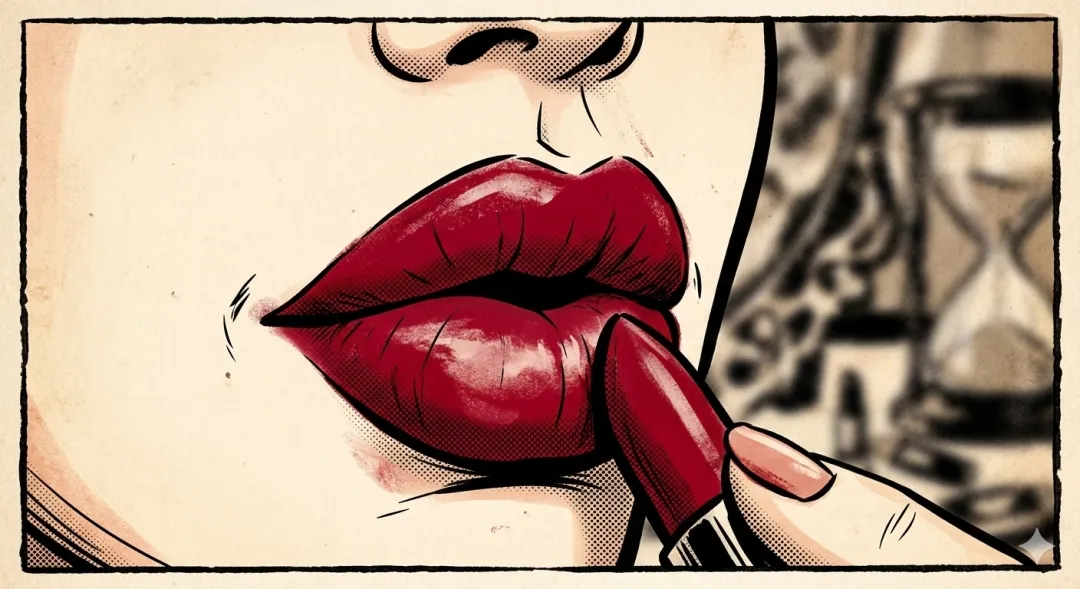 她们不再试图强行对齐那两个频率迥异的沙漏 ,也 不再 用忽视、压抑来自我防御, 她们开始直视镜子里那个 盛到极致 的身体,为了取悦这份生机 , 而抹上红唇。