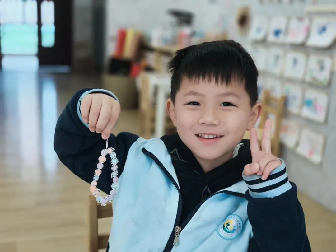 每一次小心翼翼的穿线、打结,都是在把“我爱你”慢慢串联。这份亲手制作的手链,是孩子们能想到的,最漂亮的“首饰”,要戴在最爱的人手腕上,让爱时刻相伴。