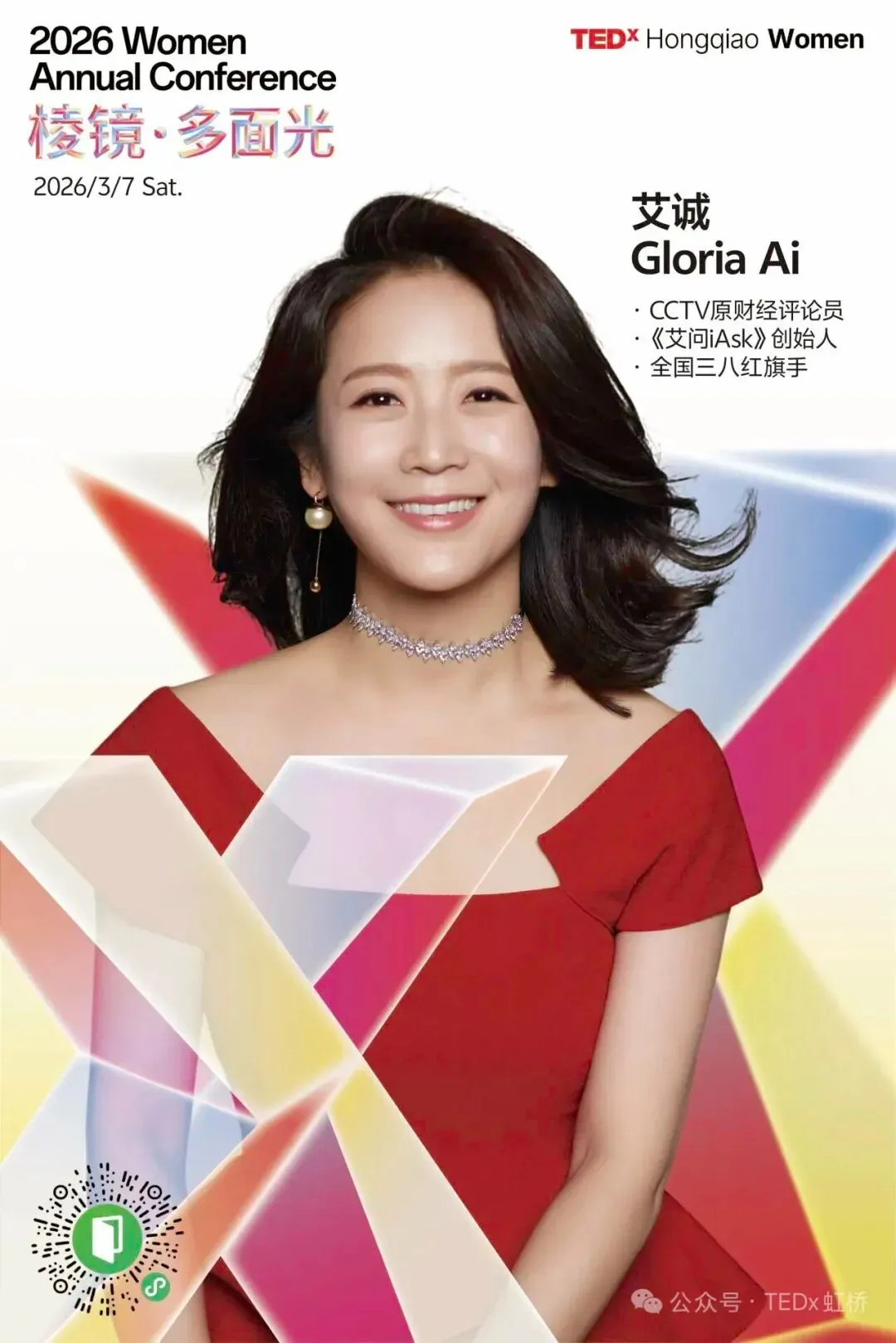 艾诚(Gloria Ai),主持人、投资人、《艾问iAsk》创始人,曾任中央电视台驻纽约财经评论员,现任《艾问人物》出品人,也担任国内外财智盛会如博鳌亚洲论坛等的常邀双语主持。艾诚是哈佛大学、北京大学和中国传媒大学的校友代表,清华大学苏世民学院业界导师,哈佛大学第一代校友(FGHA)导师,YPO世界青年总裁组织成员。