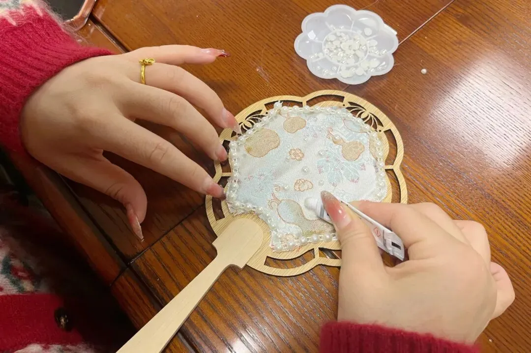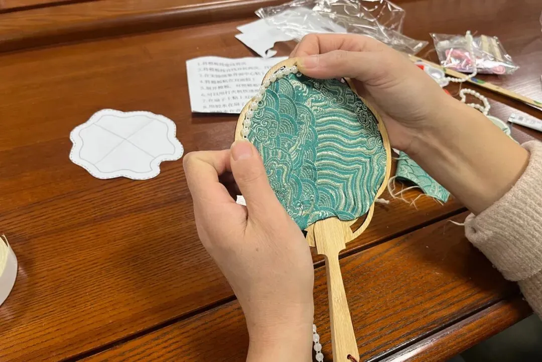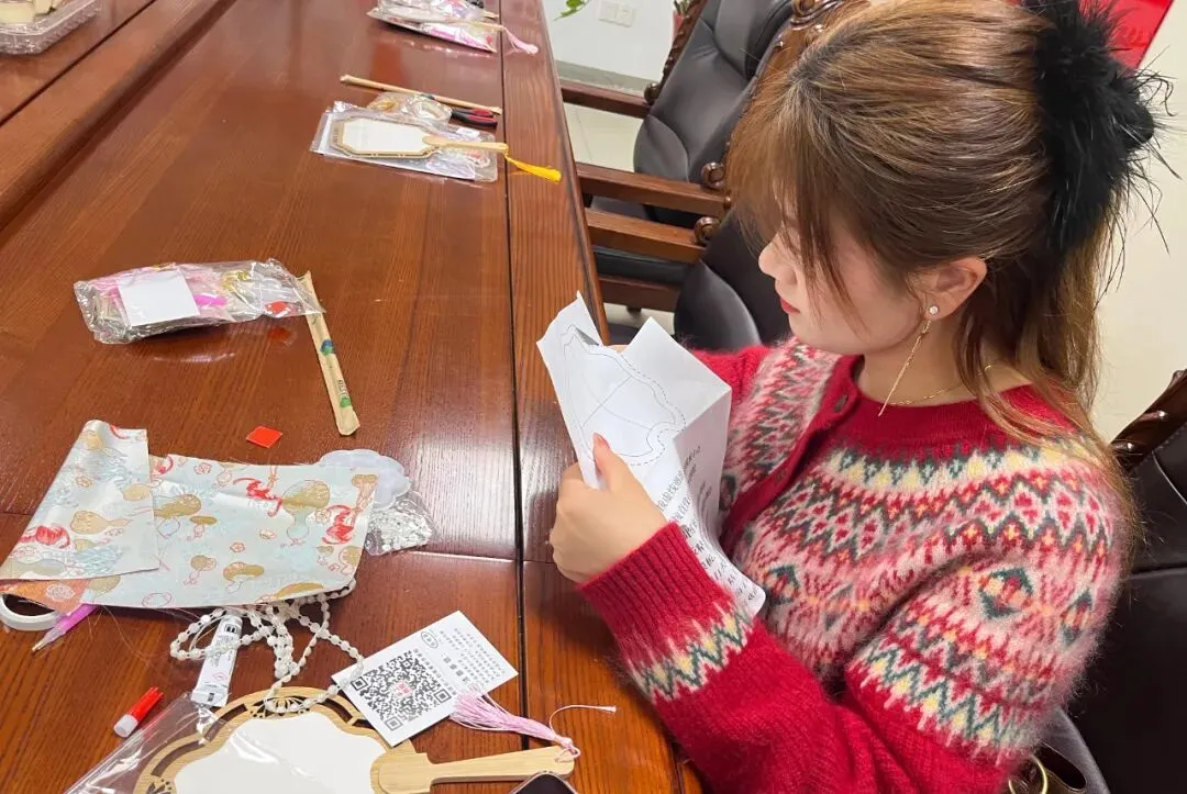 为让大家深度感受宋锦的非遗魅力,集团提前精心筹备,为每位女性员工准备了配套齐全的宋锦手工材料包,包含素雅的宋锦面料、精致的流苏、耐用的针线等,让大家能够全程自主体验手工创作的乐趣。活动现场,大家对照制作指引,结合自身创意,一步步探索宋锦挂件的制作流程,从宋锦面料的裁剪、纹样的挑选搭配,到挂件的缝合、流苏的固定,每一个细节都认真琢磨、仔细操作。遇到裁剪不平整、缝合不规整等问题时,大家相互交流、彼此指导,主动分享制作技巧与心得,在互帮互助中攻克难题,尽情沉浸在非遗技艺的熏陶与手工创作的乐趣之中,在自主创作中感受宋锦的匠心之美