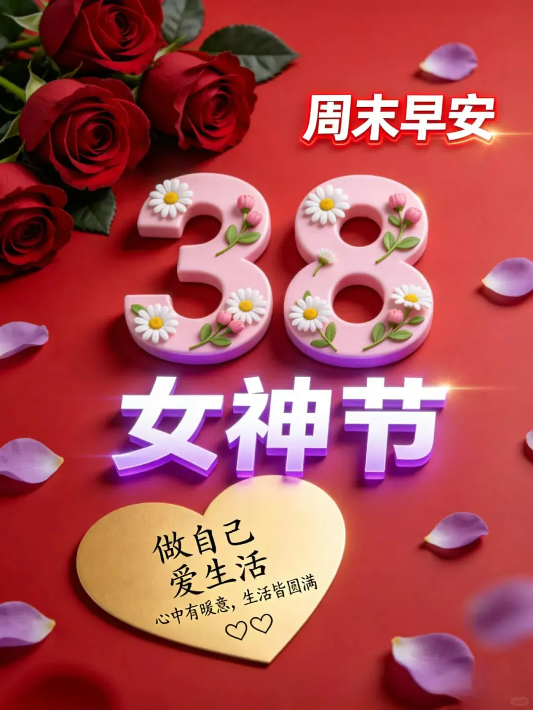 1. 🌷 早安!今天是2026三八妇女节,愿每一位了不起的她,都能被时光温柔以待。不必事事逞强,不必样样完美,好好爱自己,才是终身浪漫的开始。愿你眼里有光,心中有爱,生活有甜,日子安稳,从容自在,节日快乐,天天开心!