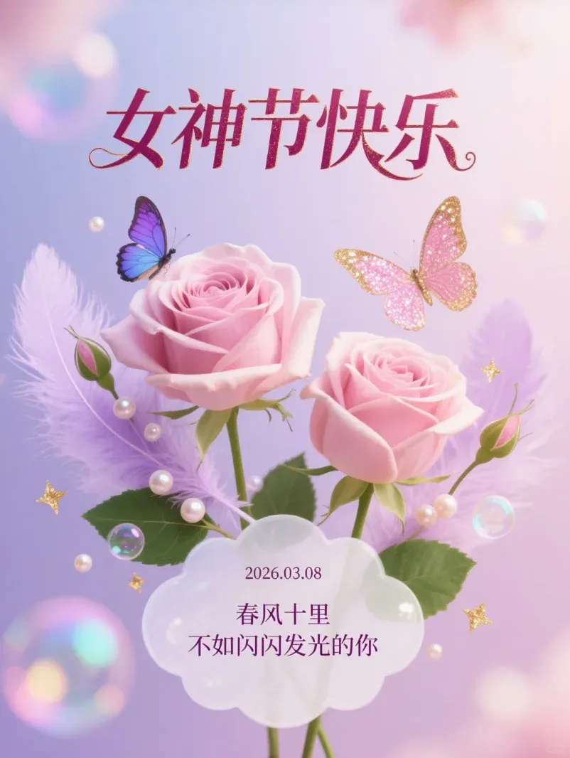 4. 🌸 早安!2026三八妇女节,愿你好好宠爱自己。你温暖了岁月,也值得被岁月温暖;你照顾了家人,也别忘了照顾自己。愿你一生被爱,一生勇敢,一生从容。不慌不忙,优雅前行,三餐四季皆安康,岁岁年年皆欢喜,节日快乐!