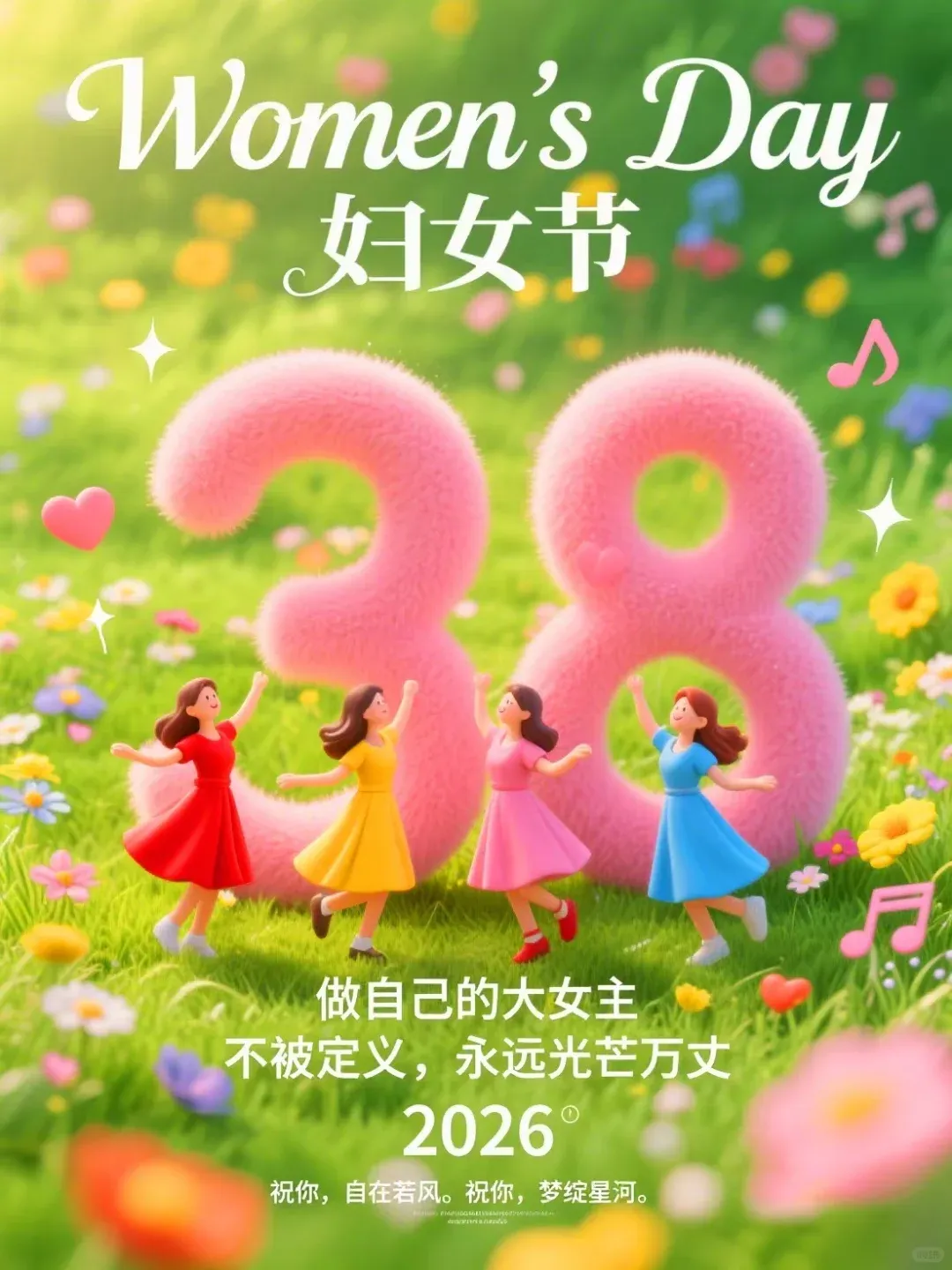 8.🌞早安哟!2026三八妇女节,是属于所有女孩的浪漫日子🥰。你正值青春,怀揣着无限的可能,像初升的太阳,充满希望。勇敢去追逐心中的梦吧,别害怕失败,因为每一次尝试都是成长的勋章。愿你今天活力四射,未来的路繁花似锦🌈!