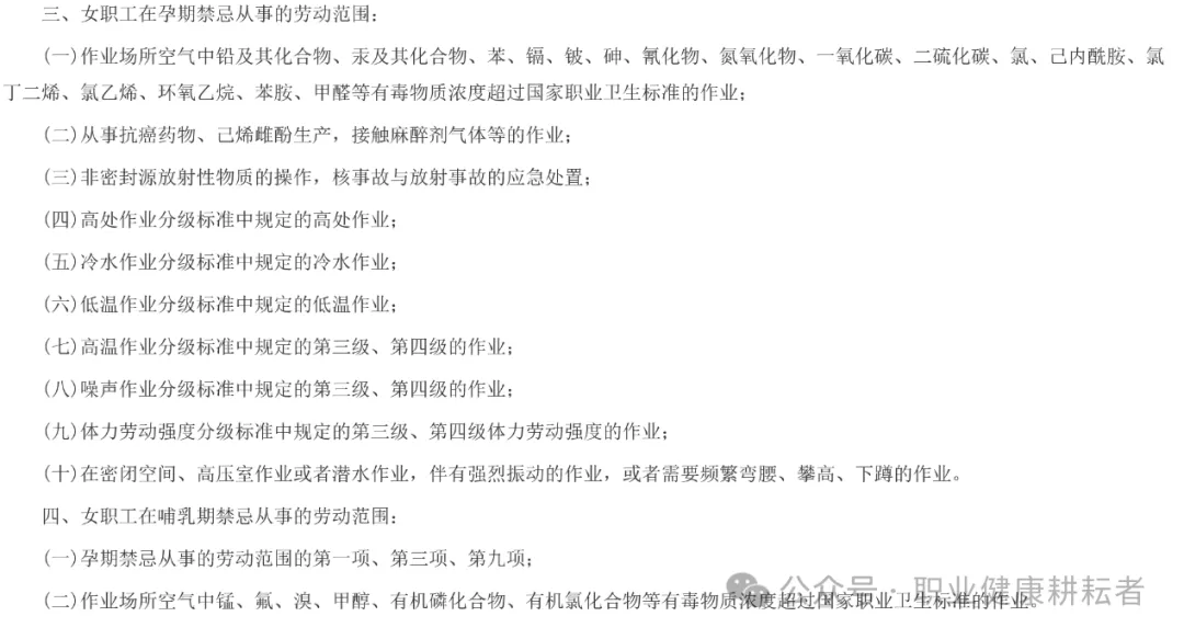 ·孕期、哺乳期禁忌的化学或物理危害作业。