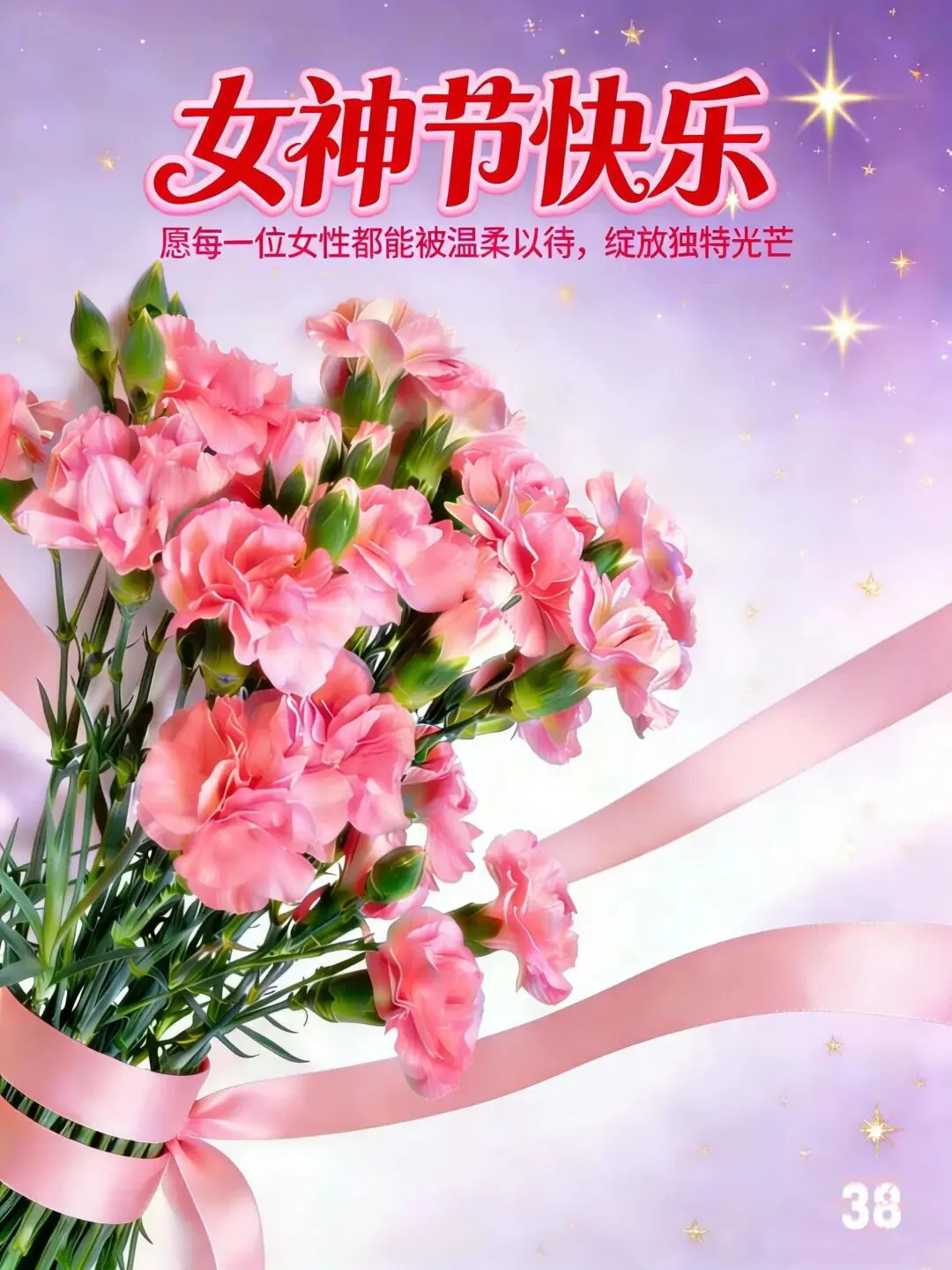 🌷✨🌸今日是 3 月 8 日三八节,愿天下所有的女神节日快乐,你们辛苦了。祝你们永远 “健康美丽”“青春永驻”“幸福快乐”,愿你们每天都有阳光相伴,美丽相伴,节日快乐,女神们!💐💕🎉