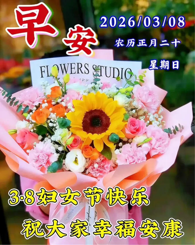 1,春光美妙花枝俏,妇女节日来报到。送来艳阳空中照,送来花香鸟语绕。春风吹拂面含笑,心情舒畅烦恼消。手机一响祝福到,深情厚谊惹人傲。祝妇女节快乐,青春永葆!