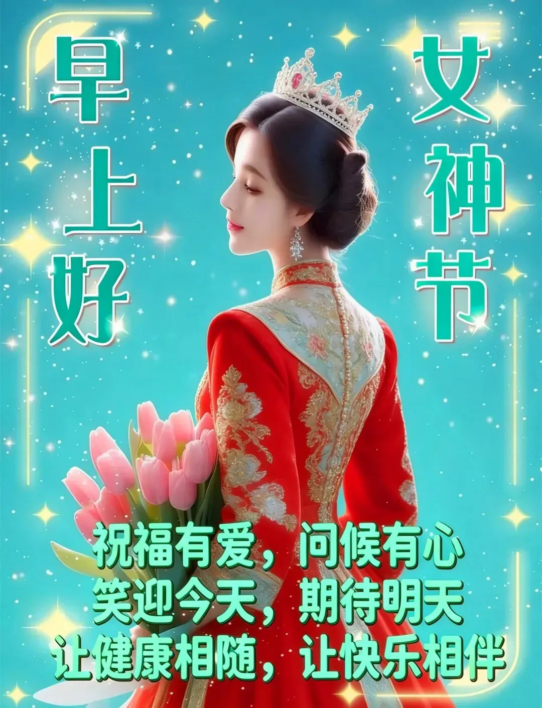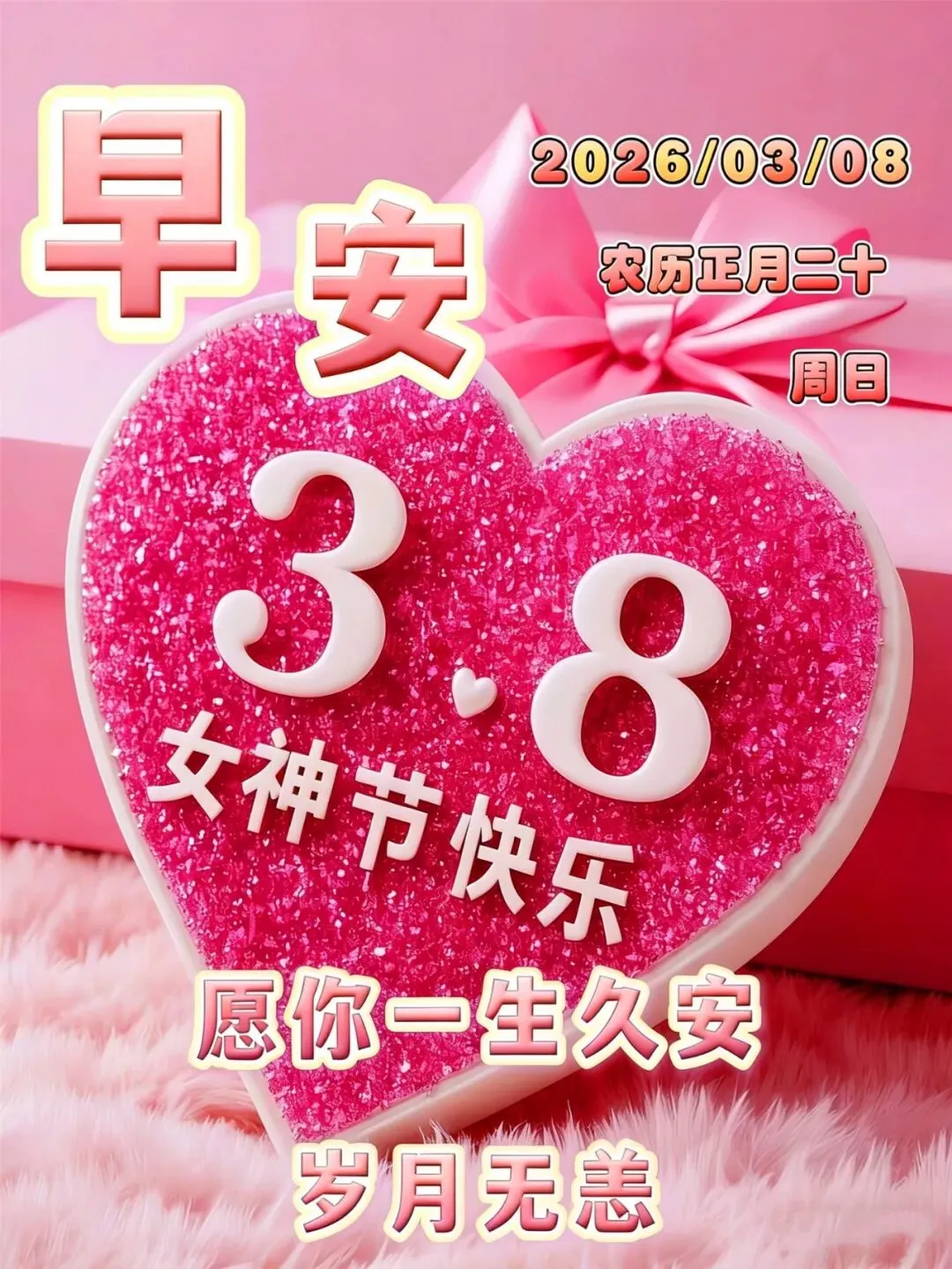 女神们,早呀!感谢你们为家庭、为生活的辛勤付出。三八节到,愿你的付出皆有回报,福气满满,日子越过越精彩!