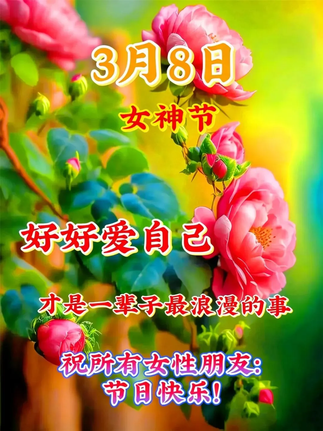3月8日-女神节漂亮图片祝福语+快乐万岁,好好爱自己,祝自己三八节快乐!
