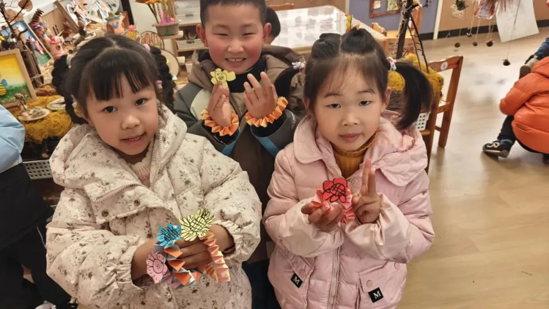 大二班创意满满,制作精美花花手环。色彩缤纷的手环由孩子们亲手编织、装饰,把最甜的祝福 “圈” 在女神手腕,用灵动小手编织出最真挚的问候,让节日充满甜蜜与惊喜。