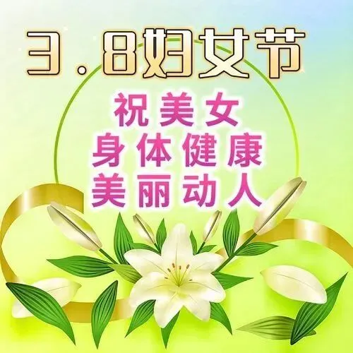 13、女人如花芳香醉人,女人如水缠绵情长。女人如虎工作不累,女人如玉贵妃容颜。愿你三八妇女节:美若天仙笑声不断,年轻漂亮魅力无限。