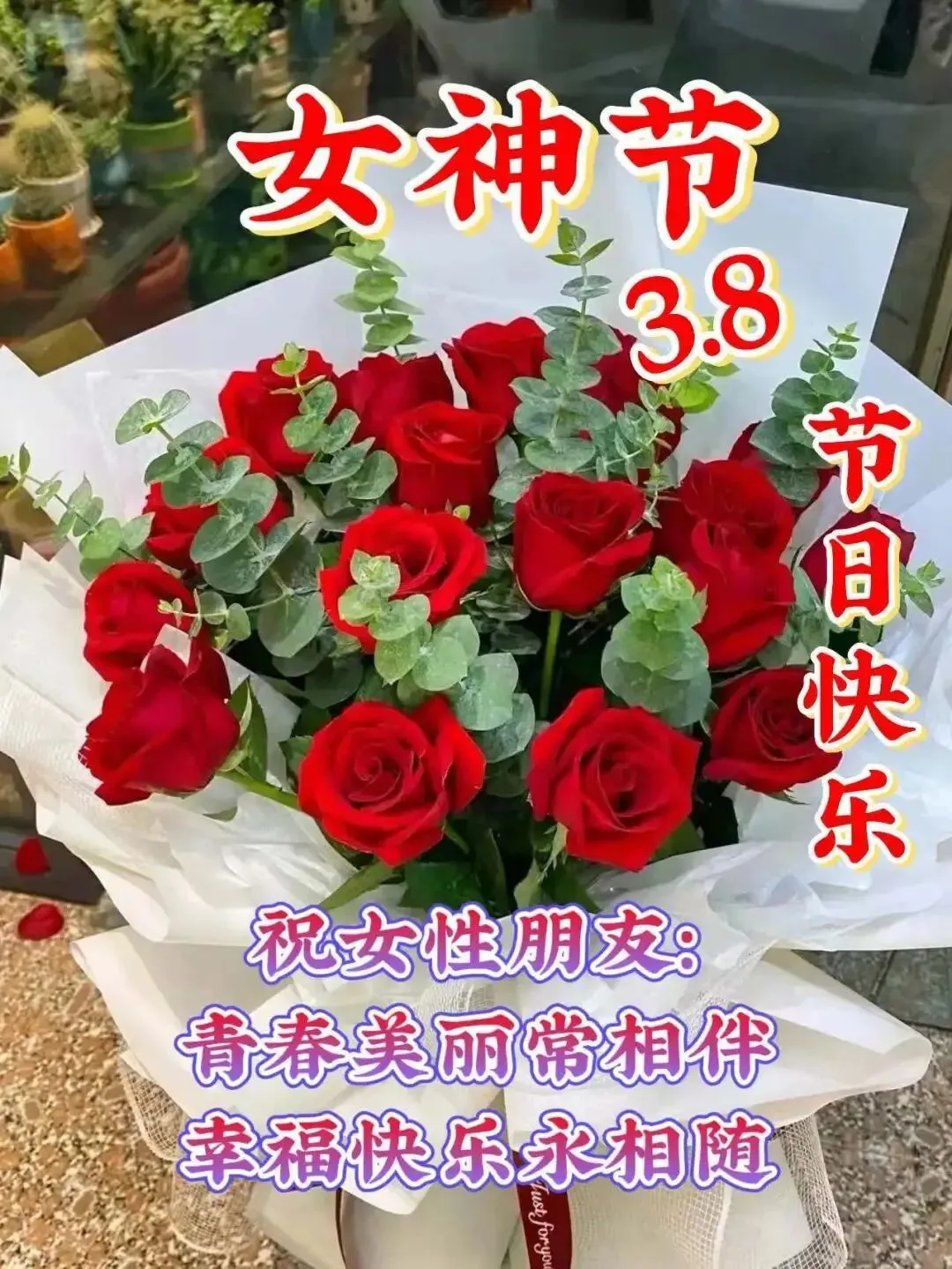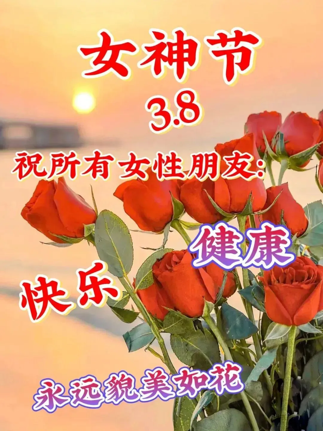 15、三八妇女节来了,祝愿天下妇女:貌如玫瑰,永远十八岁,逛街购物,随便消费,不用减肥,身材完美,有爱相随,有情安慰!