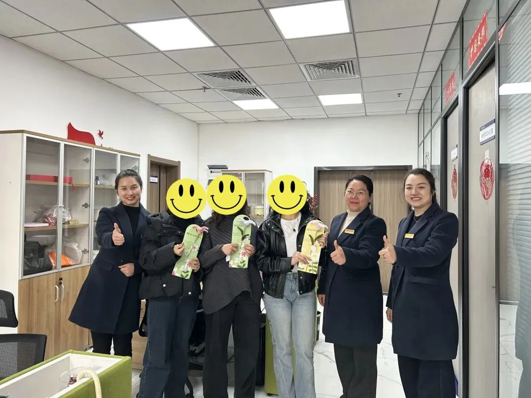 当一朵朵扭扭花递到女同胞们手中,惊喜与感动在笑容里绽放。楼宇间欢声笑语不断,大家手捧花束合影留念,定格下这温馨一刻。一朵小花,装点了节日,也拉近了心与心的距离。