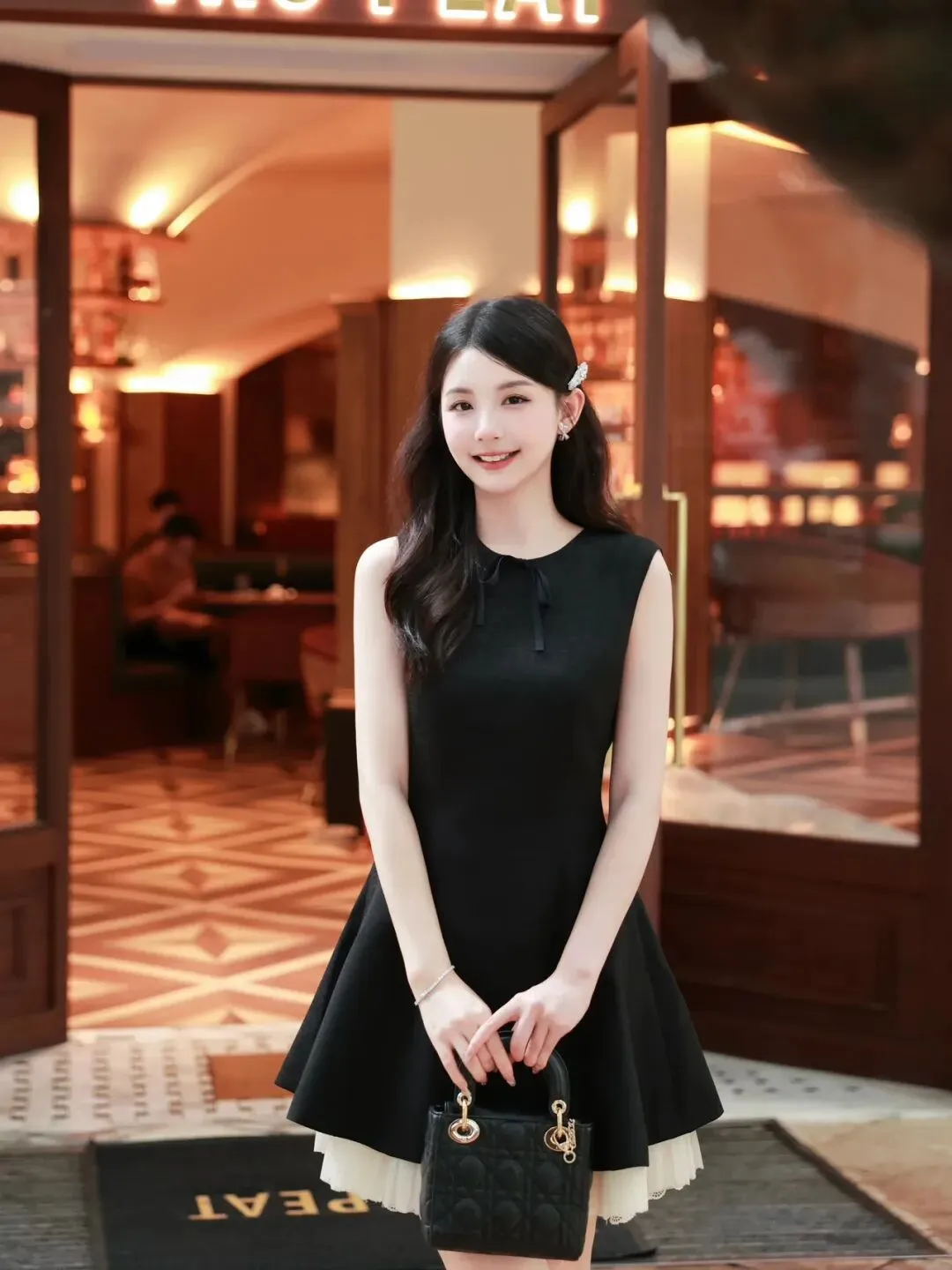 穿黑色无袖连衣裙在餐厅拍写真,总怕动作太僵硬、显刻意,撑不起温柔又高级的氛围感?这组照片覆盖室内台阶、玻璃门、露台等多元场景,用黑色手提包作为道具搭配灵动姿势,既能突出穿搭的利落质感,又能解决摆拍刻意感的问题,新手直接套用就能出片。