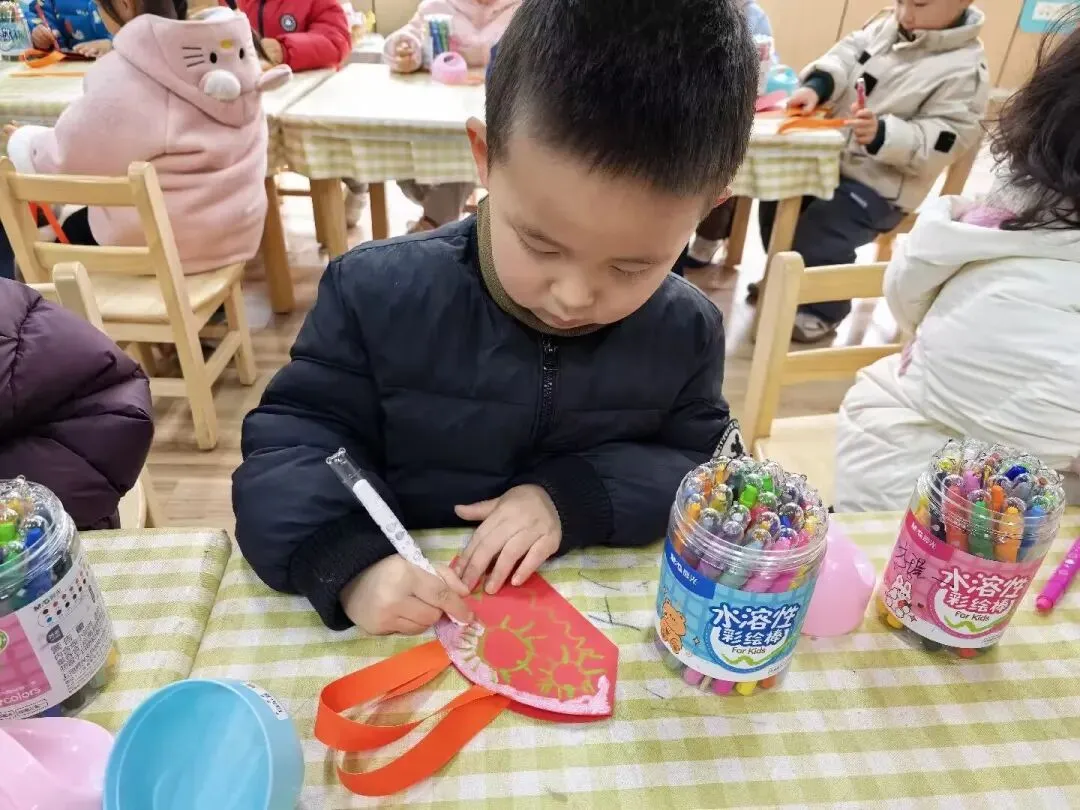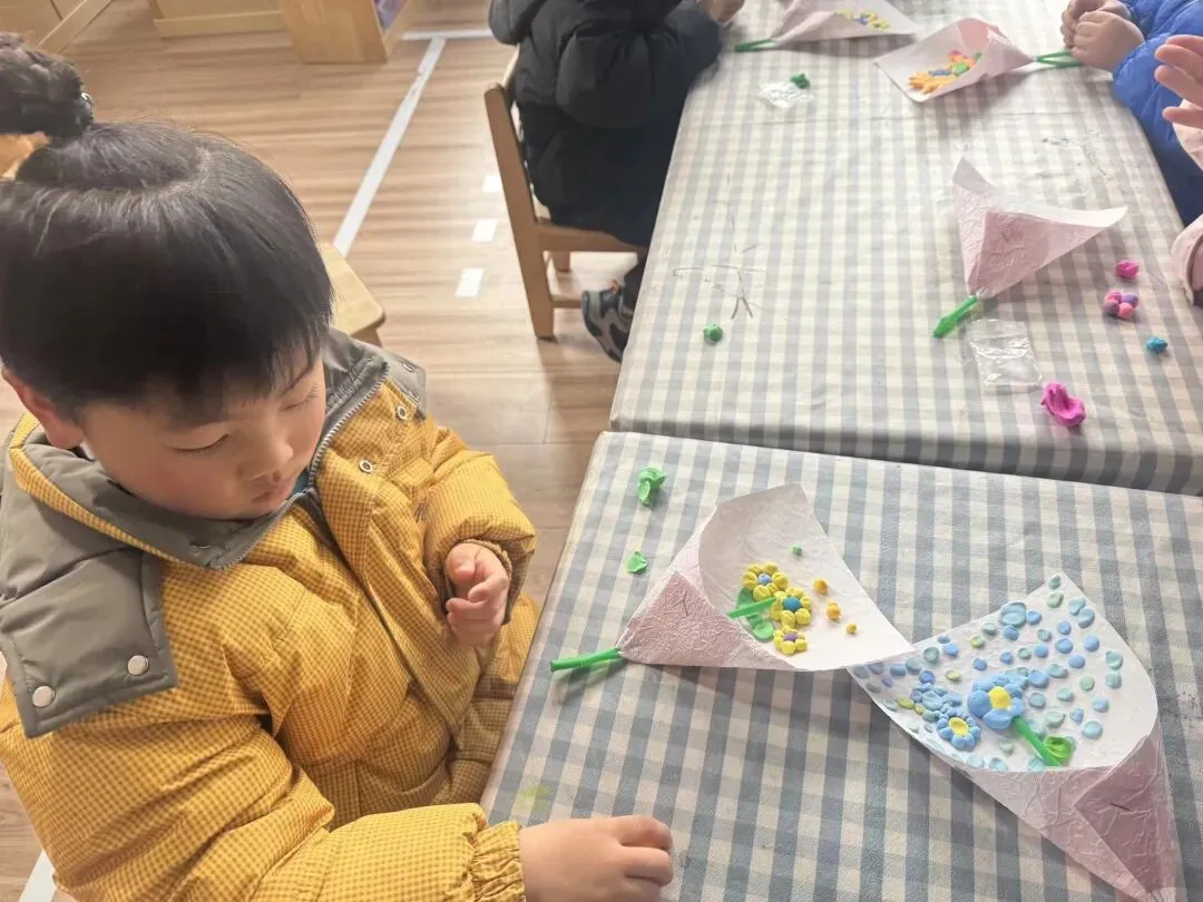 活动中,孩子们化身小小创意家,在老师的陪伴下动手创作。一张张彩纸、一件件材料,在稚嫩小手中变成了精致的礼物。每一次折叠、粘贴、涂色都饱含深情,每一件作品都藏着最纯真的祝福,孩子们用亲手制作的礼物,向身边每一位女性长辈表达浓浓的爱意与敬意。
