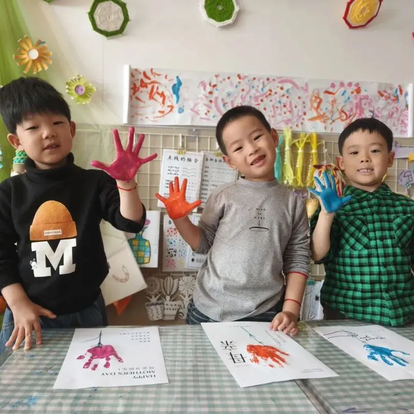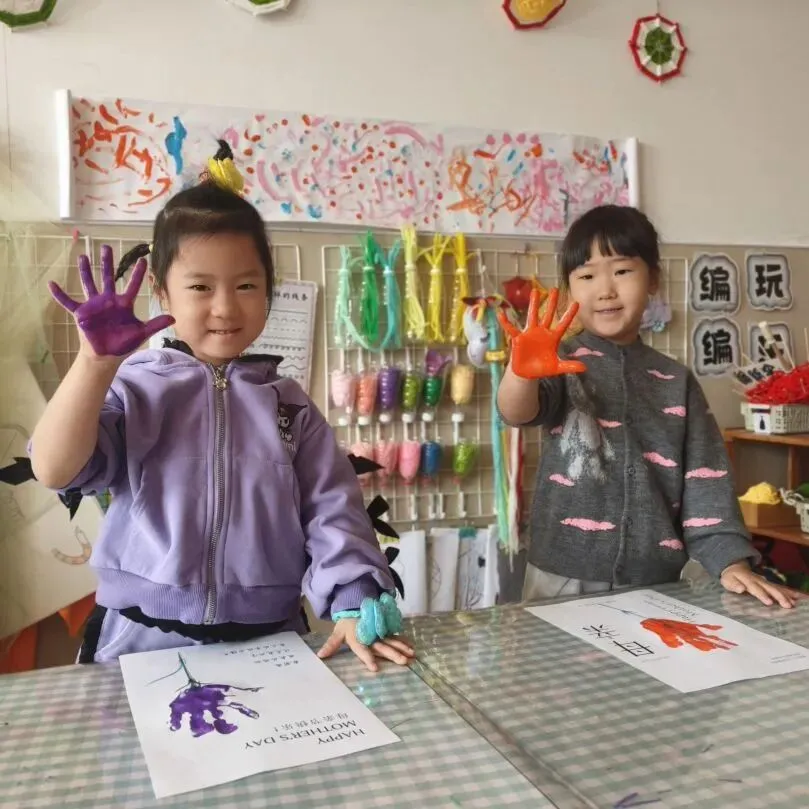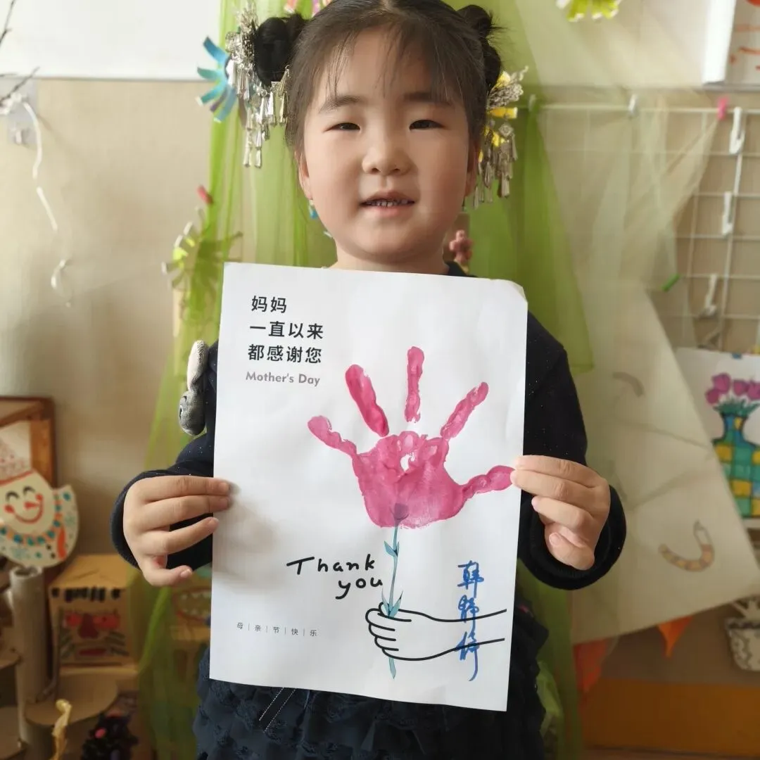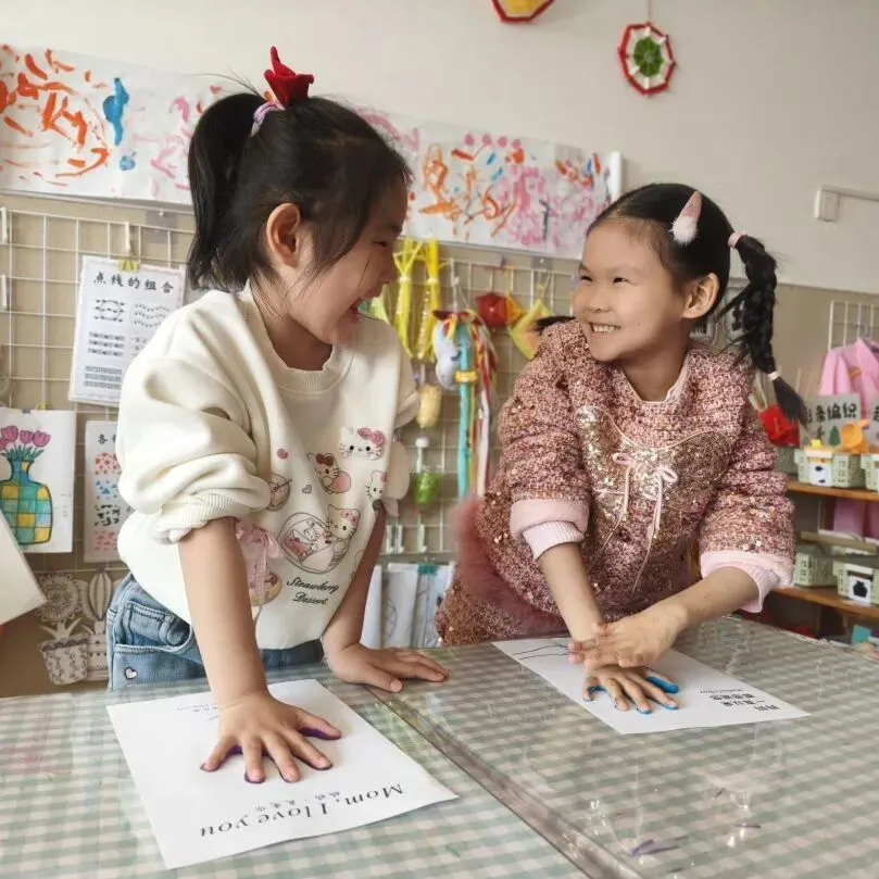 孩子们在手指上涂满颜料拓印小手印,把小手印变成盛开的花朵。贴上“妈妈我爱你”等祝福语,一张张充满温度的贺卡,是对女性长辈温暖付出的最好回应。