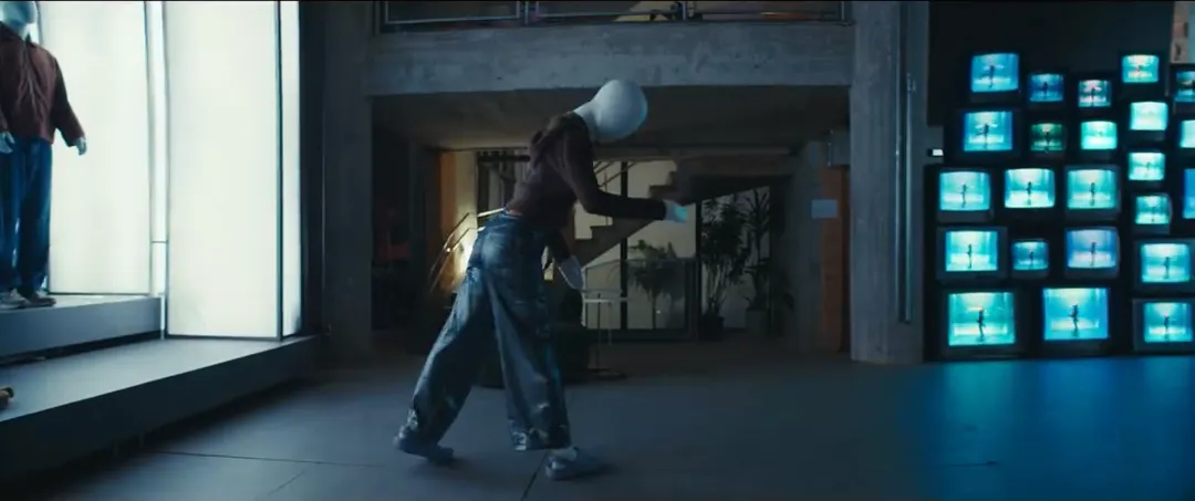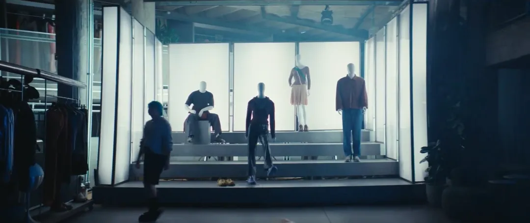 深夜的街道空无一人,路灯忽明忽暗,镜头缓缓推进一家亮着灯的店铺橱窗,里面摆着几个穿着Crocs洞洞鞋的模特,和平时我们看到的橱窗假人没什么两样。