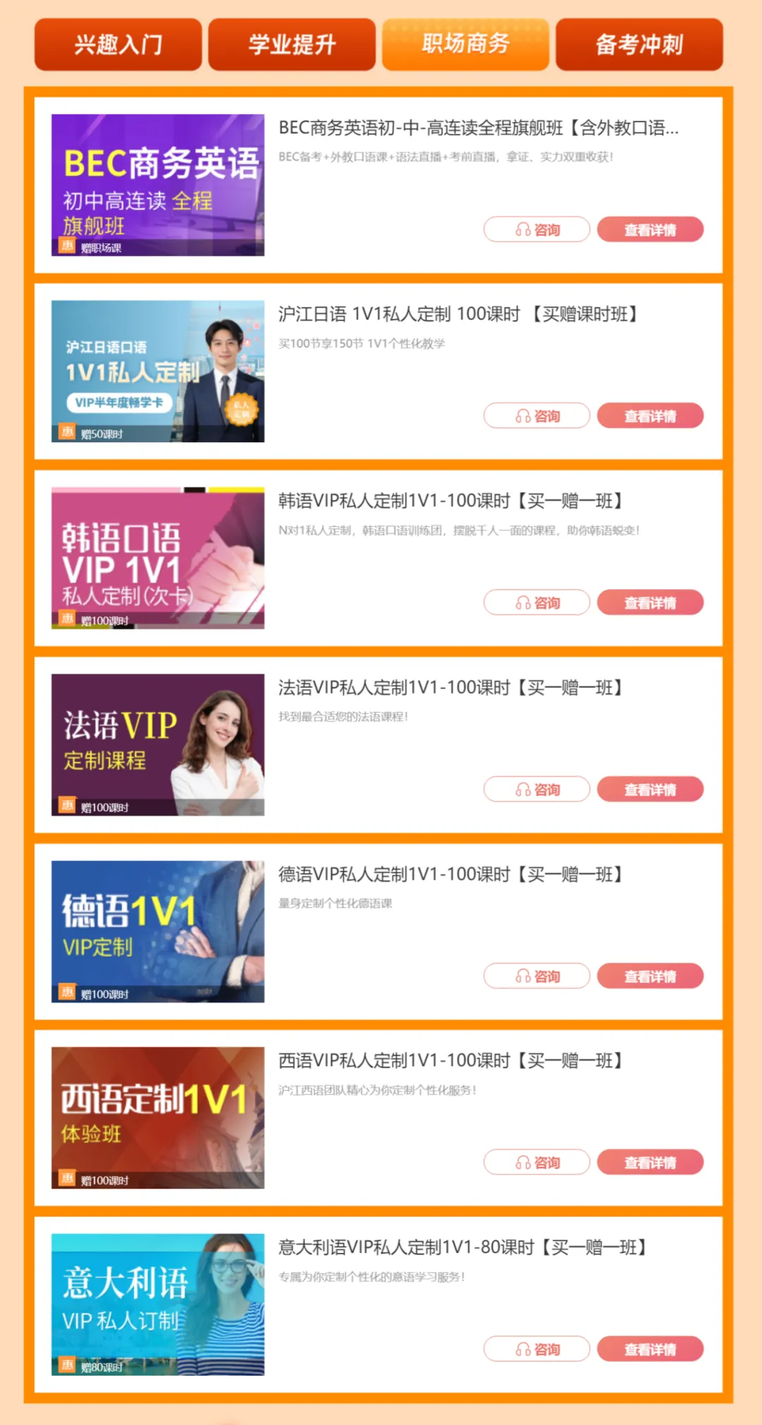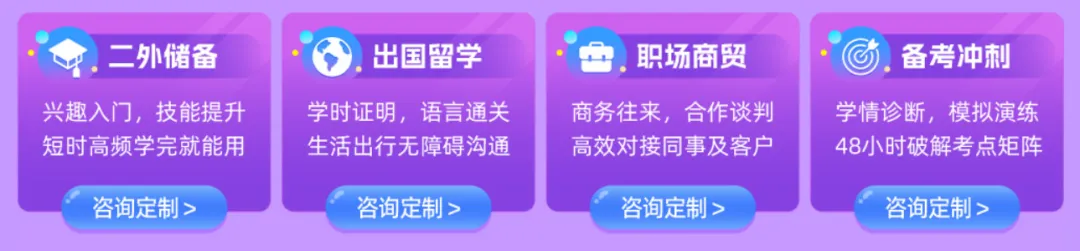 小语种零基础也能轻松开口,根据你的行业、岗位需求定制内容。不管是对接外企客户,还是做跨境业务,都能精准匹配你的职场商务需求,帮你轻松应对各种工作需求,让外语从你的短板,变成你的核心优势。