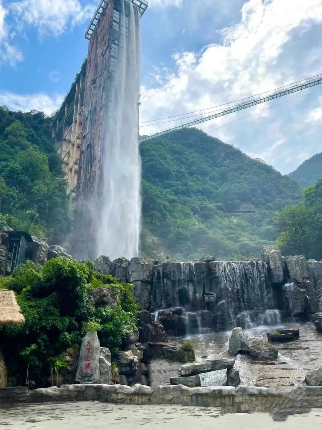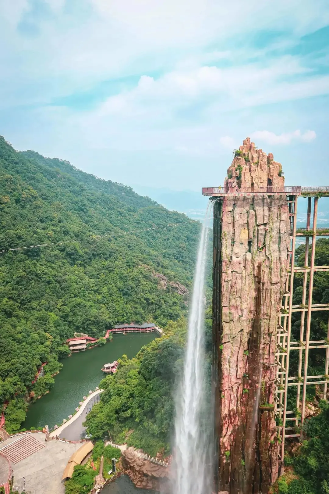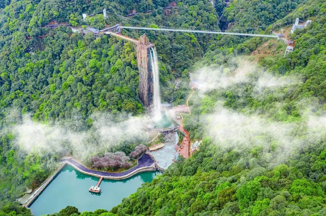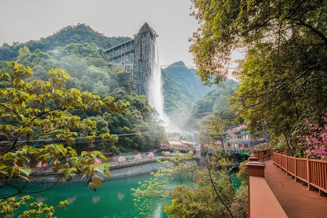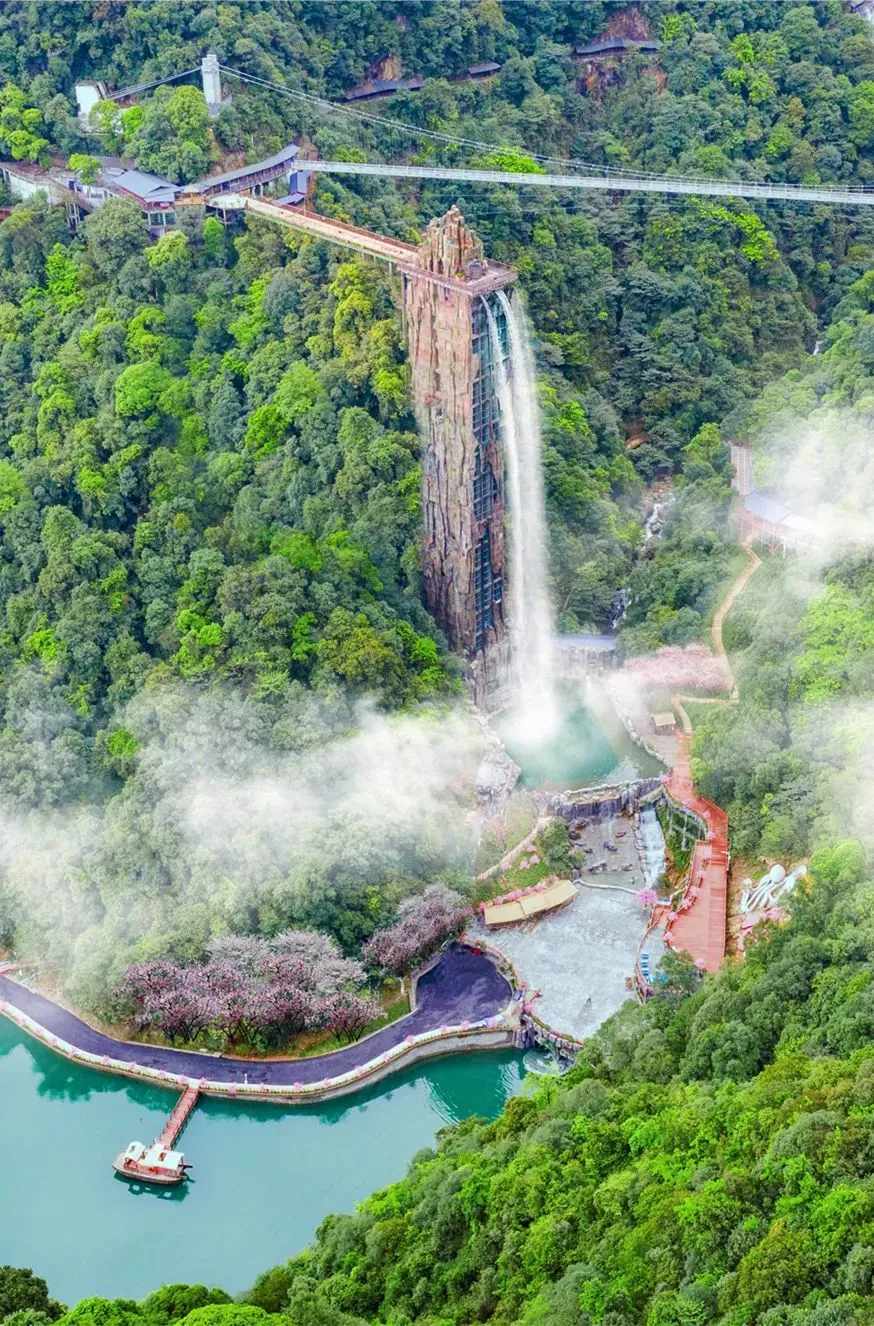 罕见的瀑布与观景电梯组合游玩项目