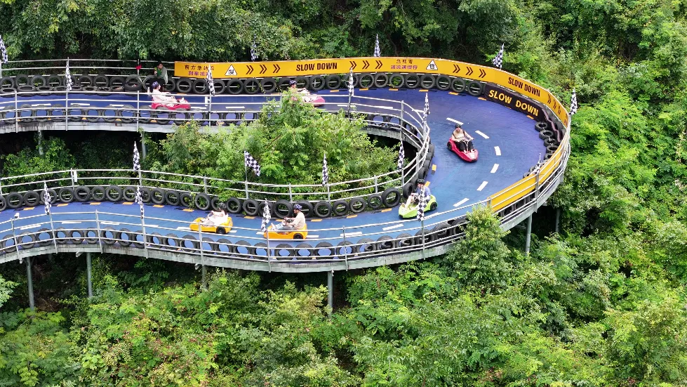 必玩项目来了!1.2公里的云上飞车,滑道贴山而建,手边就是翠绿的山林,风从耳边呼啸而过,比过山车多了份“与自然拥抱的刺激”!