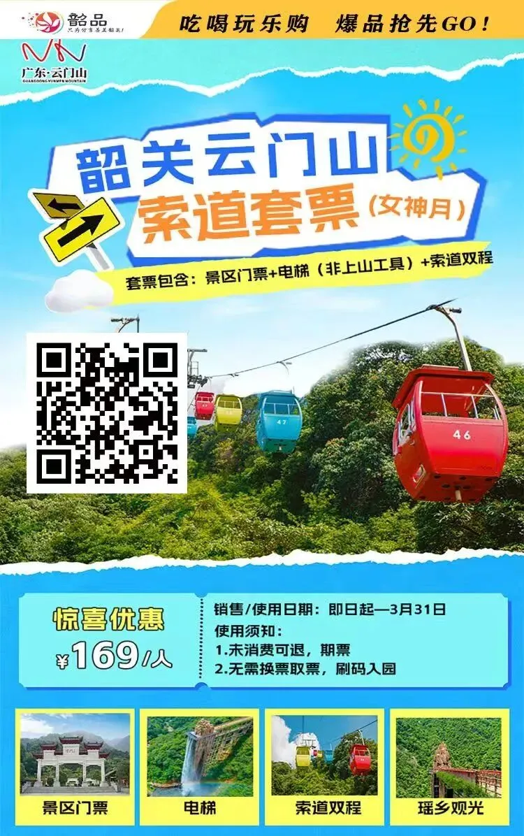 抢购&使用时间:即日起-2026年3月31日套票项目:景区门票+索道(上行)+电梯(非上山工具)+云上飞车
