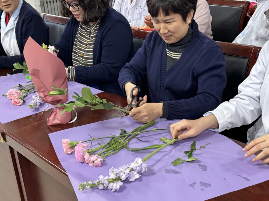 三月春风暖,花开绽芳华。在第116 个 “三八” 国际妇女节来临之际,为致敬坚守在社区健康一线的“白衣女神”们,田和社区卫生服务中心精心策划了一场温馨雅致的插花手作活动,以花为媒,传递关怀,让全体女职工在忙碌的工作之余,邂逅一场与美好时光的温柔相遇。