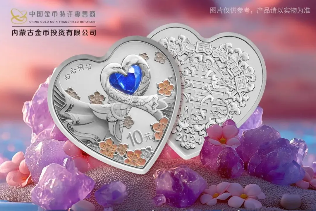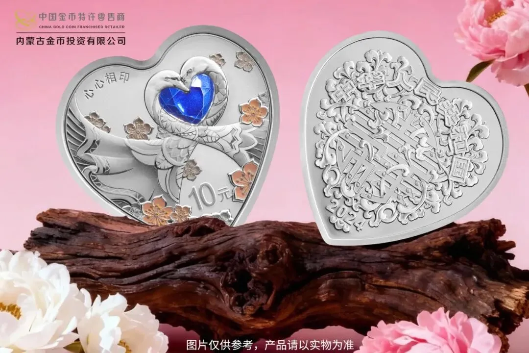 2024 吉祥文化 30 克心形银质 “心心相印” 纪念币,是美好爱情的象征。币面以天鹅、心形和花卉等元素交织组合,绘制出一幅浪漫画面。天鹅一生相伴,象征着爱情的忠贞,花卉则增添了柔美与温馨。“心心相印” 字样巧妙融入币面,寓意着情侣间心有灵犀、情意相通。