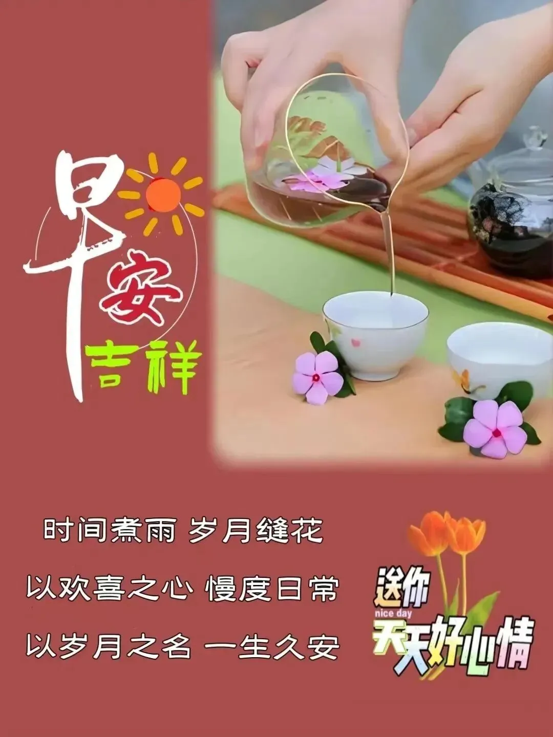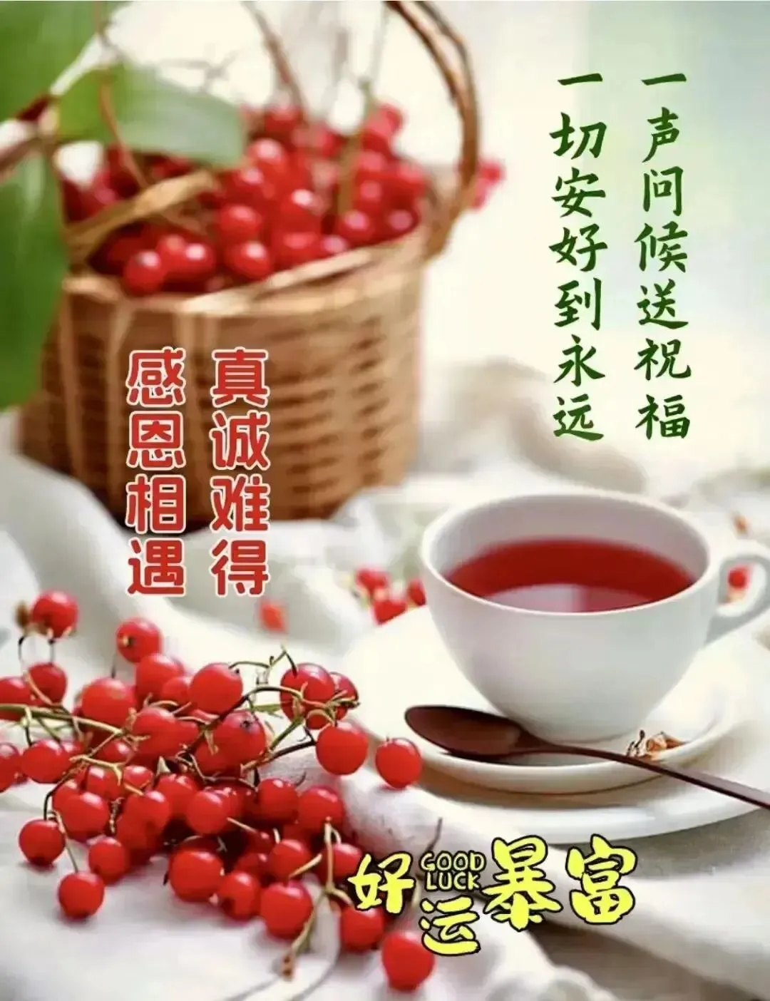 24,好茶都清淡,好友都思念,好缘都长久,好人都平安,天地有爱,人间有情,相互牵挂,健康同行。
