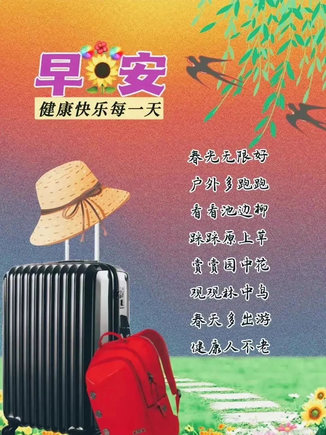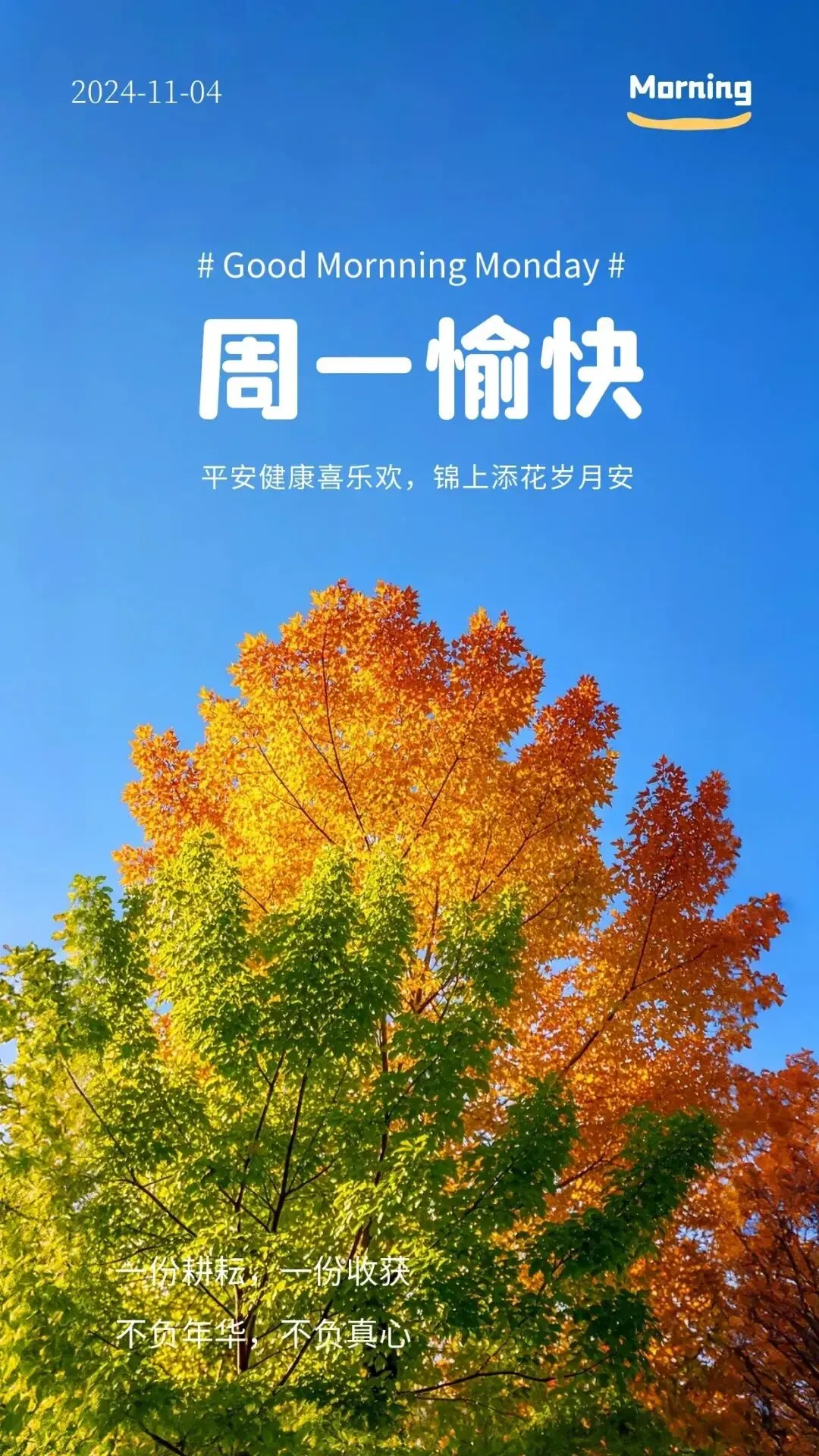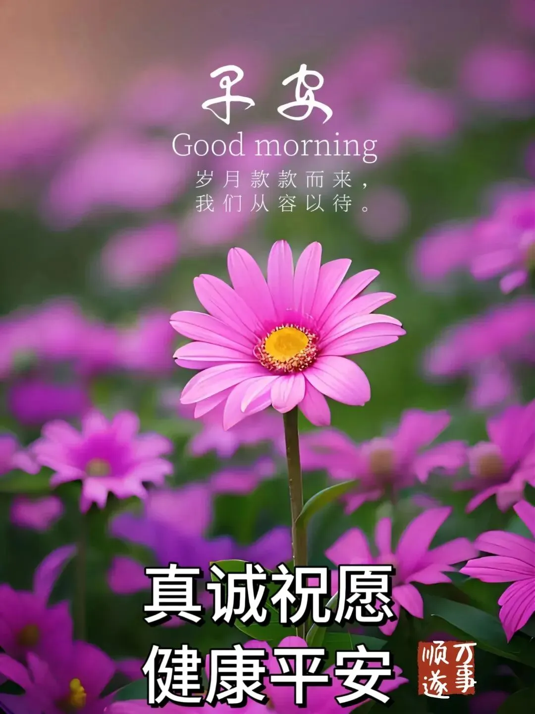 3,好运,一起走,健康,一起守。平安,手牵手,幸福,共拥有。从青春,到夕阳,一路走,一路忙,送走了风华正茂,迎来了两鬓风霜。让我们在变老的路上,拥抱快乐和安康。新的一天,愿我们彼此祝福问候!早安!