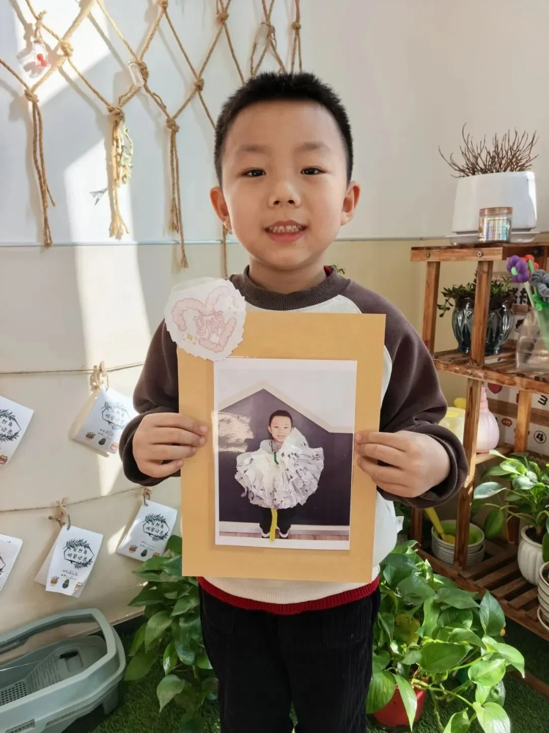 孩子们牵着妈妈的手,化身“小小设计师”,用五彩的超轻粘土、亮晶晶的贴纸、缤纷的小纽扣,装饰着素朴的相框。稚嫩的小手认真地揉、搓、捏、贴,每一个动作都在诉说着“我爱你”。当一张张承载着幸福瞬间的亲子合照被小心翼翼地放入亲手装饰的相框中时,教室里响起阵阵惊叹——“这是世界上最独一无二的相框!”