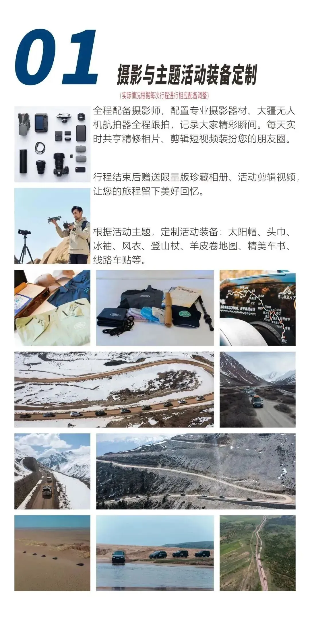 全程安排专业自驾主、副领队带队,随行跟拍及车队航拍,客服管家24H在线及售后技师远程技术支持。