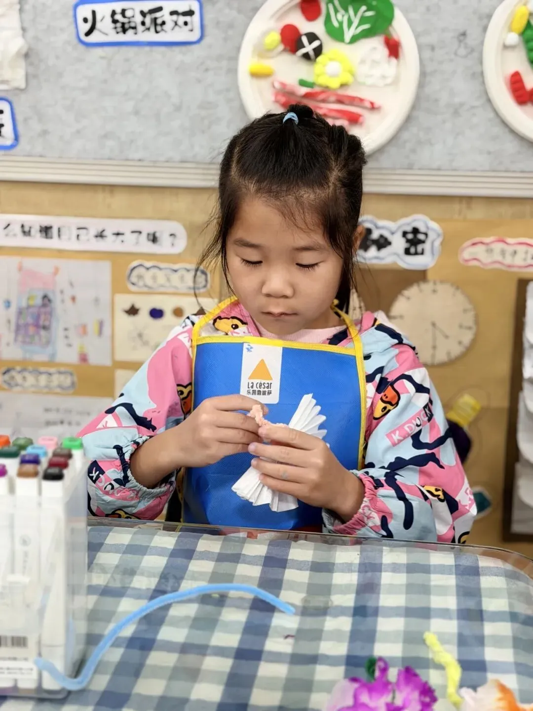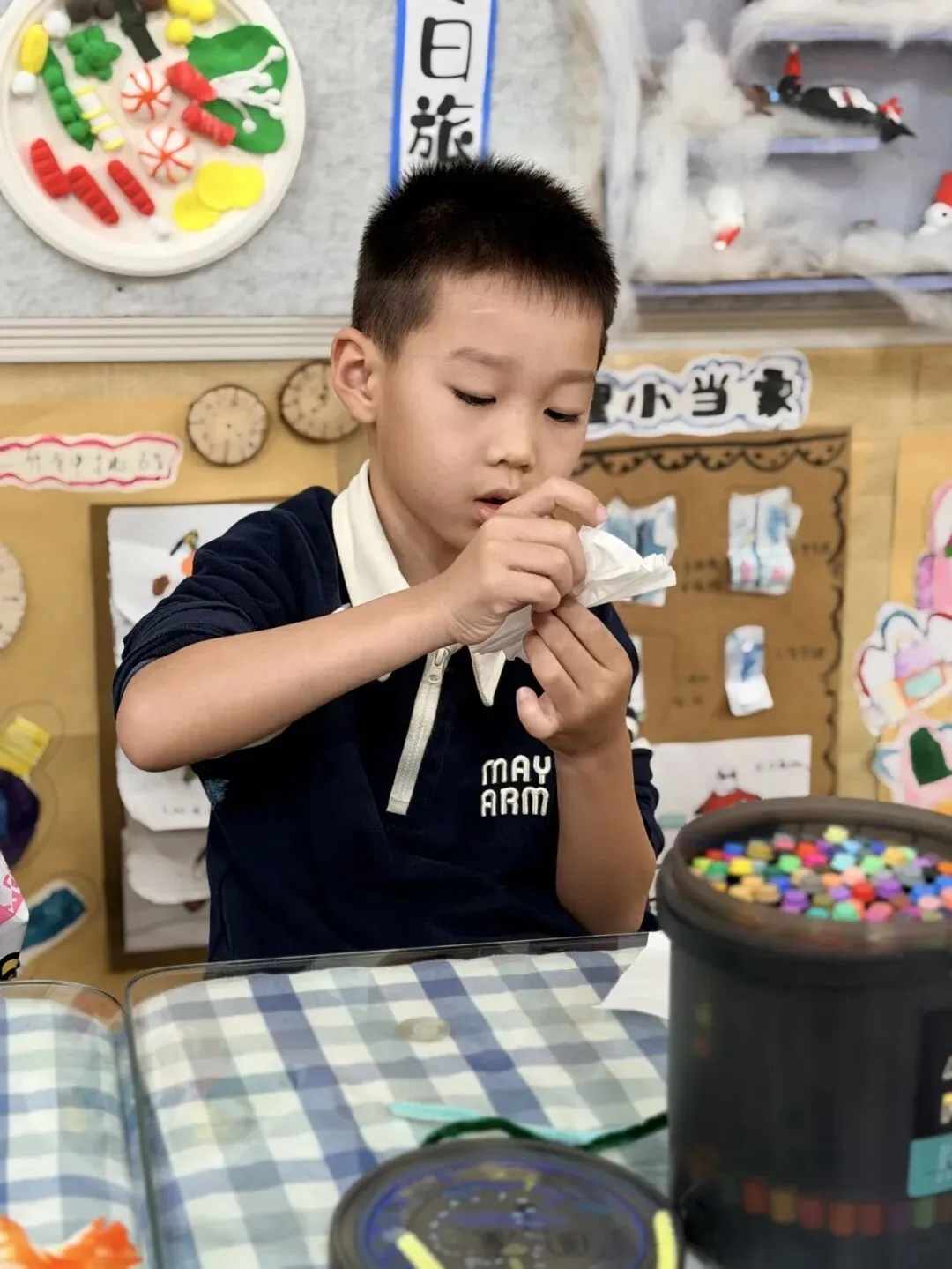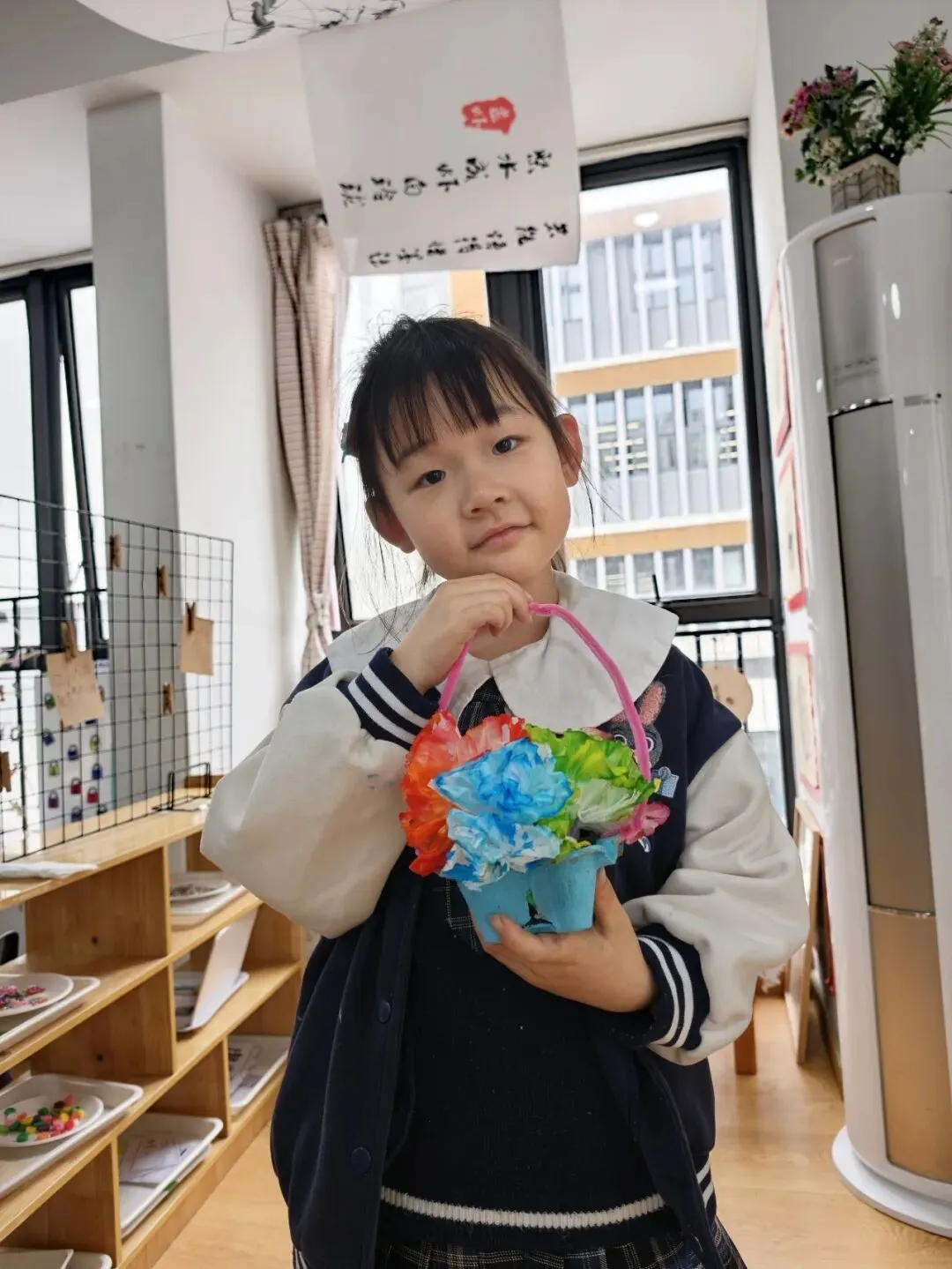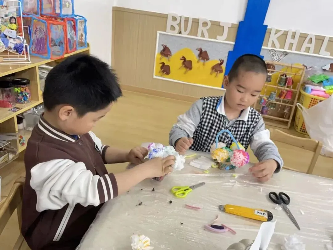 Have you ever seen a coffee cup holder transformed into a work of art? The children in the senior class are focused on a wonderful journey of "turning waste into treasure." They gently press colorful clay into disposable coffee cup holders to create fertile soil. One by one, colorful chenille stems are twisted between their fingers, turning into tall and sturdy flower stems.