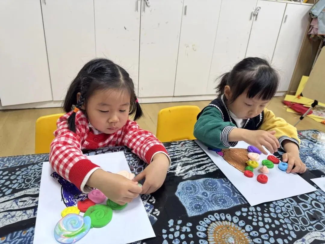Then, something magical happened! The children rolled and rolled the soft clay into thin, long strips, and carefully coiled them up—one by one, three-dimensional flowers came to life! Pink, yellow, purple... These adorable coiled clay flowers were gently pressed onto the paper, forming a bouquet that will never wither, arranged in perfect harmony. Hidden inside each coiled flower is a secret about spring and a story about love.