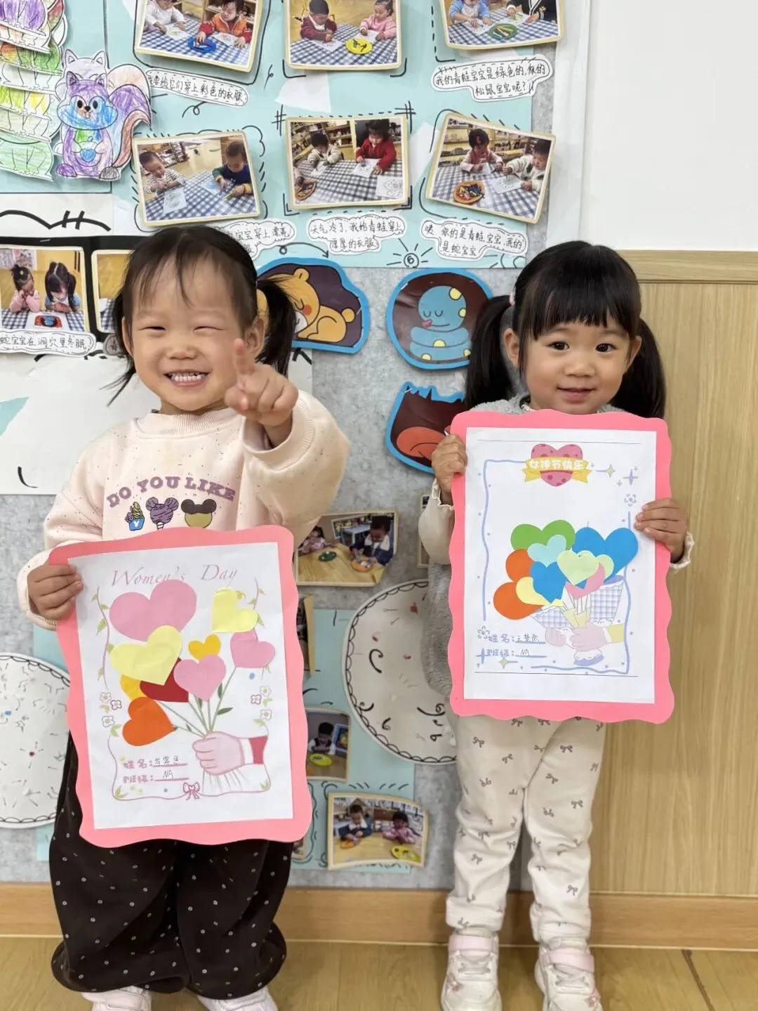 The colorful hearts bloom like flowers along the stems. Although their little hands are not yet very nimble, every heart they stick on is their most sincere expression. Looking at their completed works, they smile brighter than any flower, as if to say, "Mommy, this is the flower I made for you!"