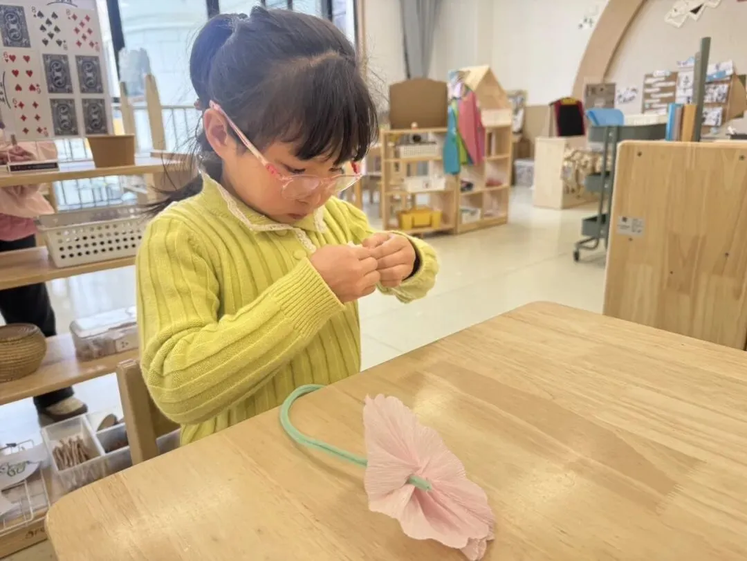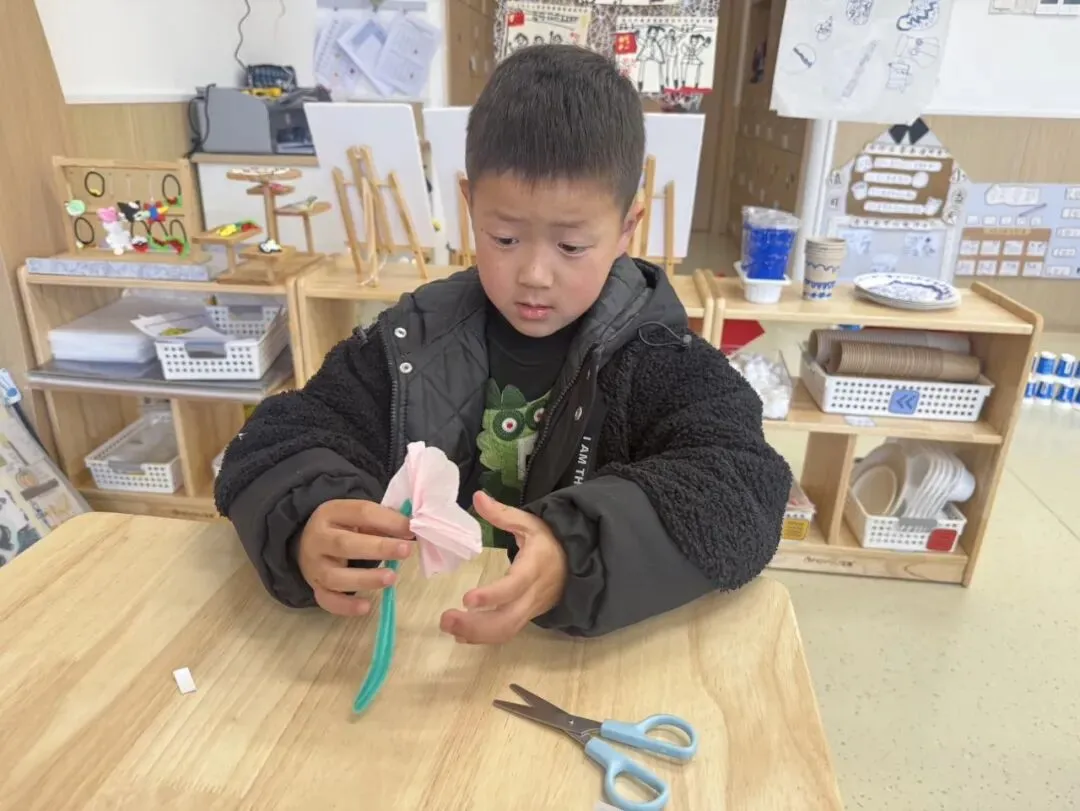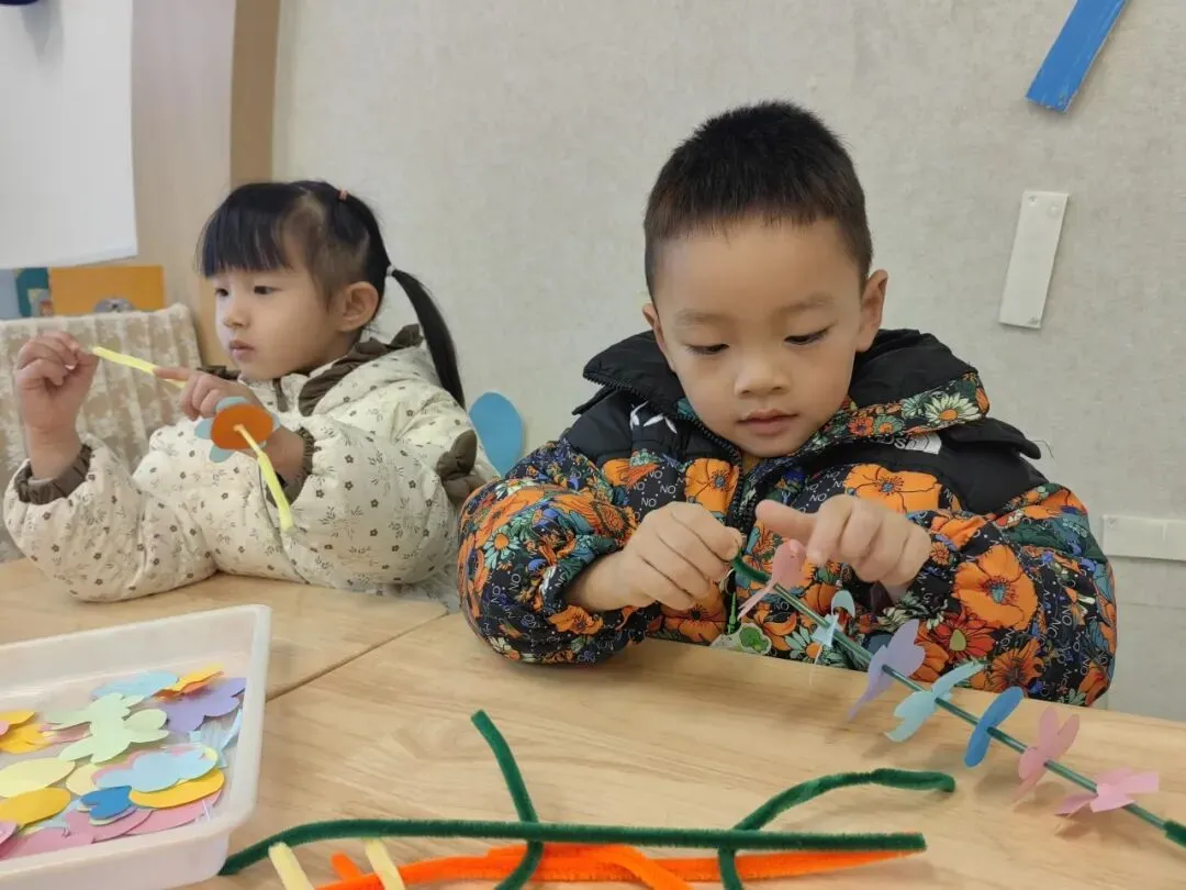 为迎接妇女节,小二班的孩子们也在老师的引导下,将花朵、吸管与扭扭棒花芯巧妙串联。色彩鲜艳的多巴胺花朵轻松完成,不仅锻炼了小手精细动作,更让宝贝们亲手制作礼物,把满满的爱与祝福送给妈妈、外婆们,温馨又有意义。