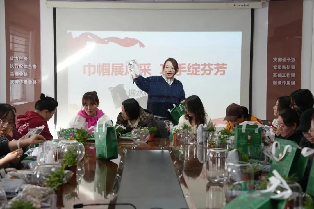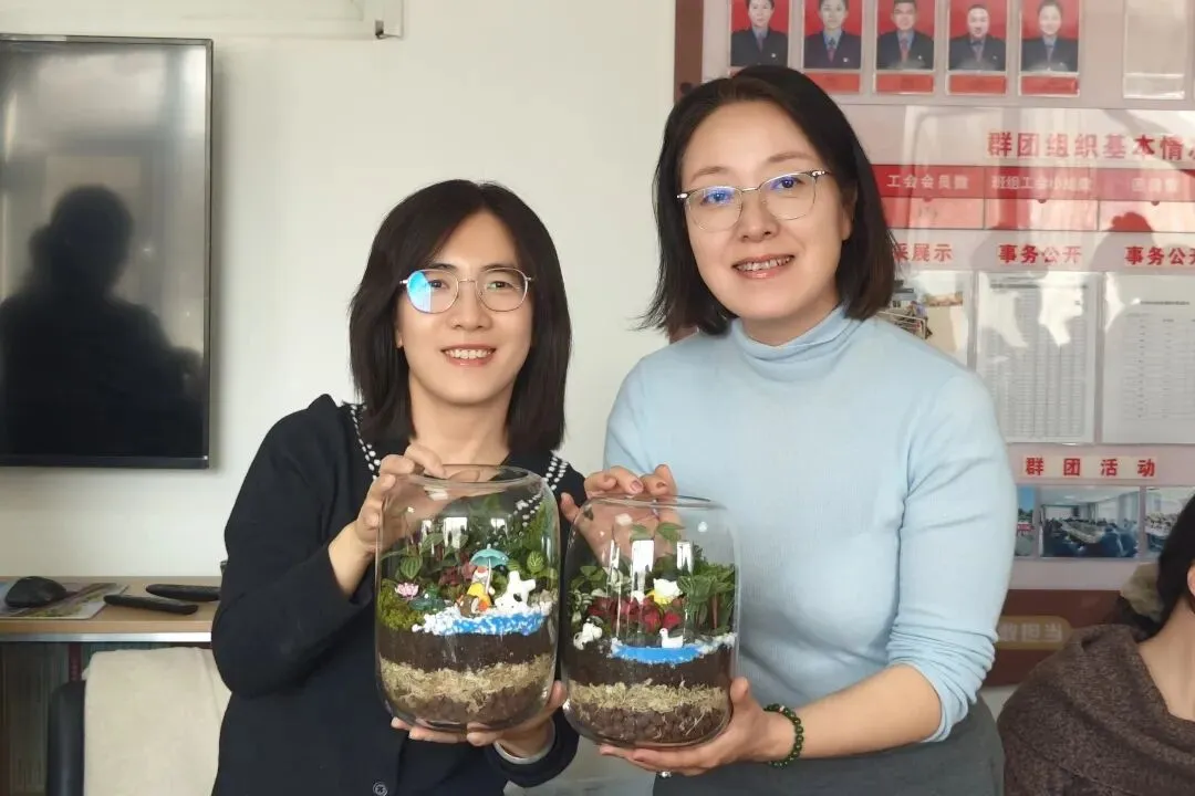 女职工们巧手修剪、构思布局