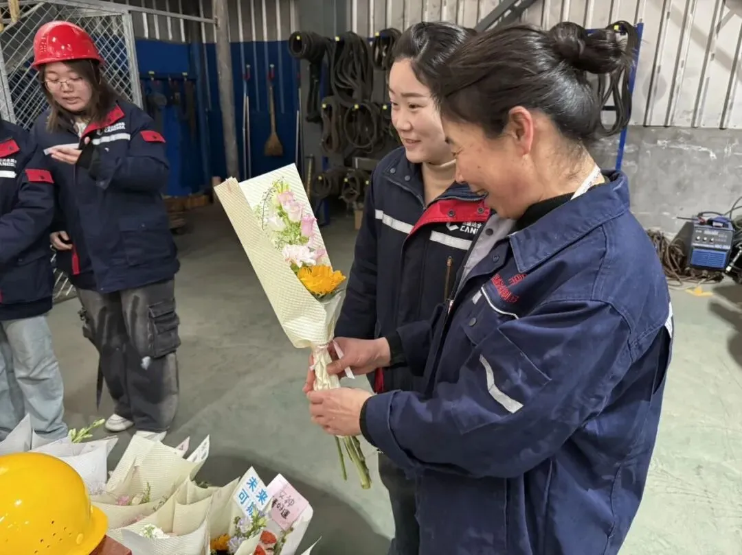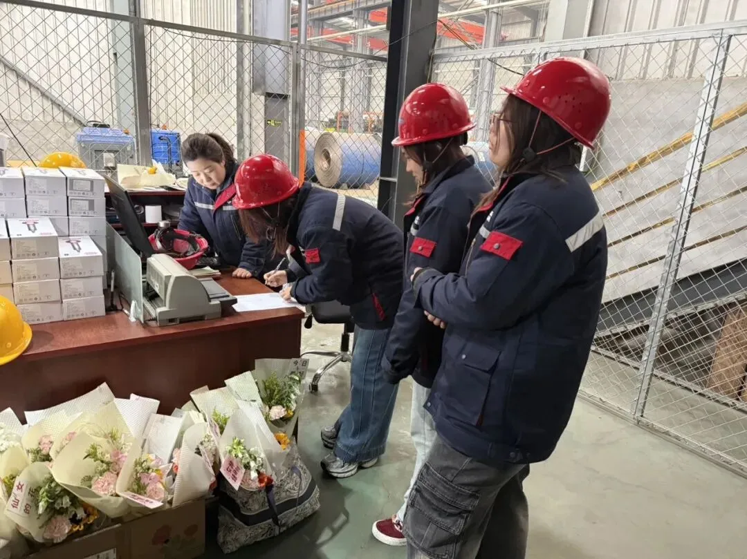 在生产一线,我们的女职工们接过花束时,眼里满是惊喜与感动。这份来自公司的惦记,让大家在钢铁般的厂区里,也感受到了柔软的温暖。有人笑着说,原来在工厂里也能收到这样浪漫的仪式感,这份温暖会成为继续前行的力量。