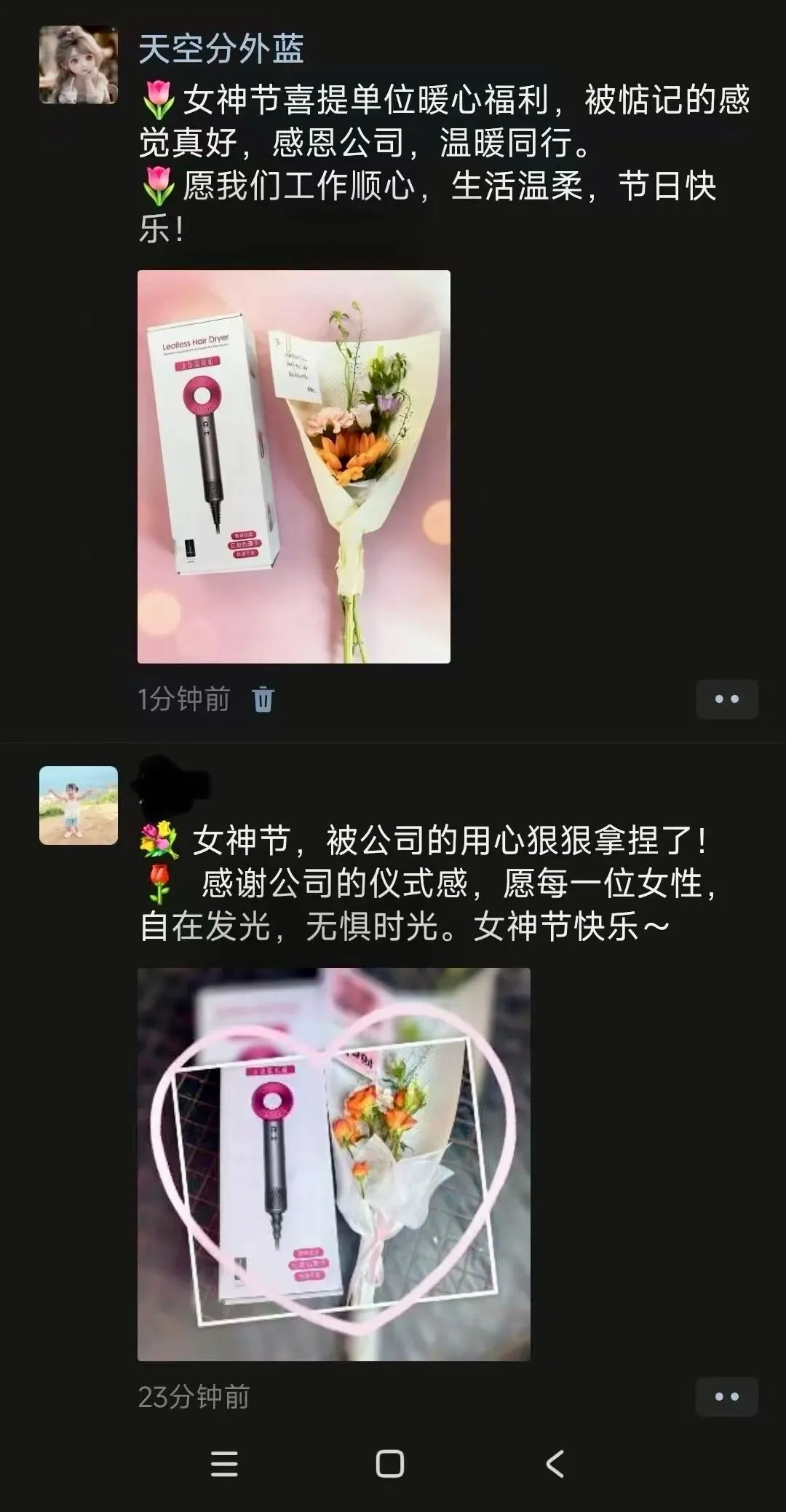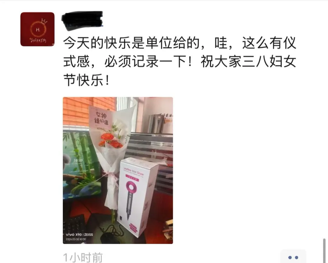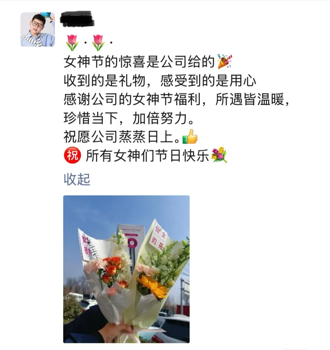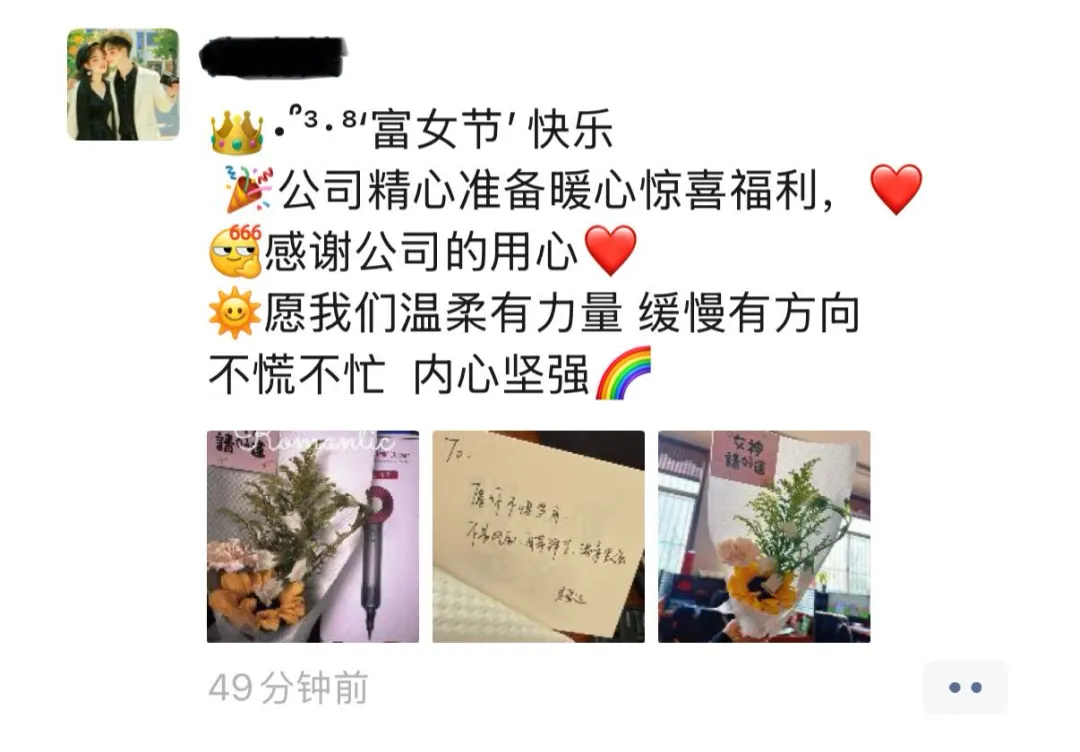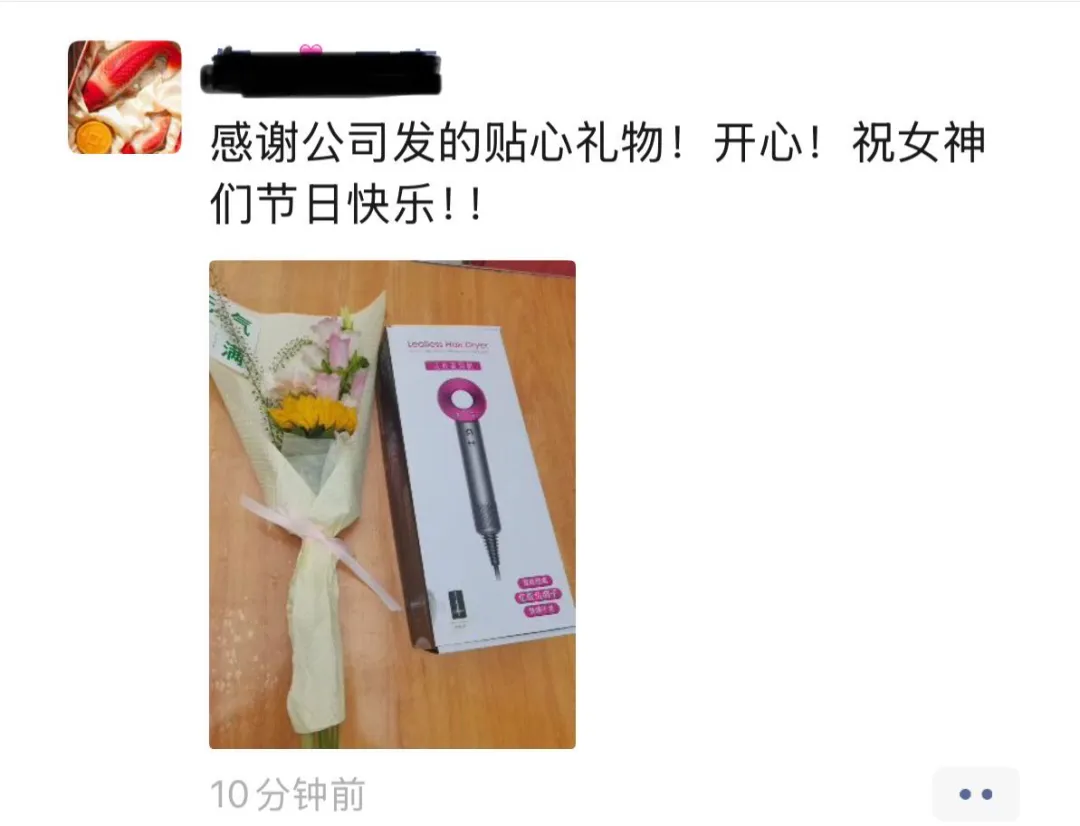 “女神节的惊喜是公司给的,收到的是礼物,感受到的是用心。”
