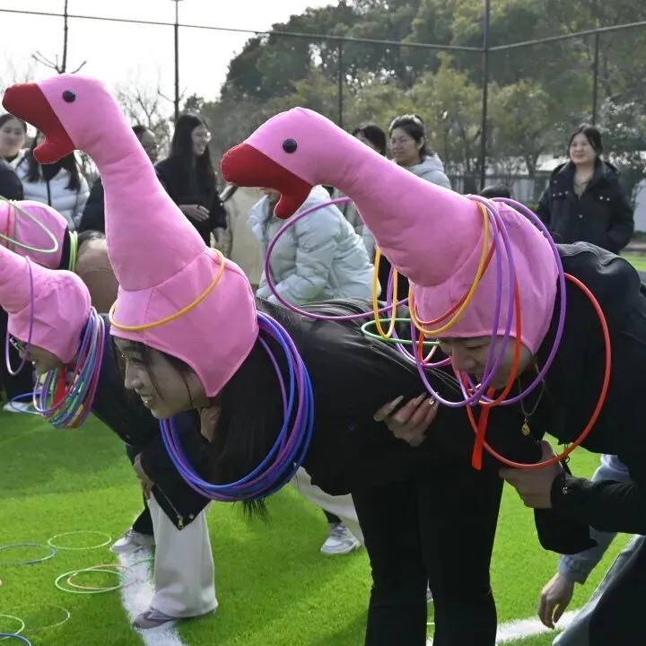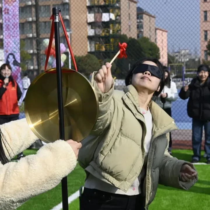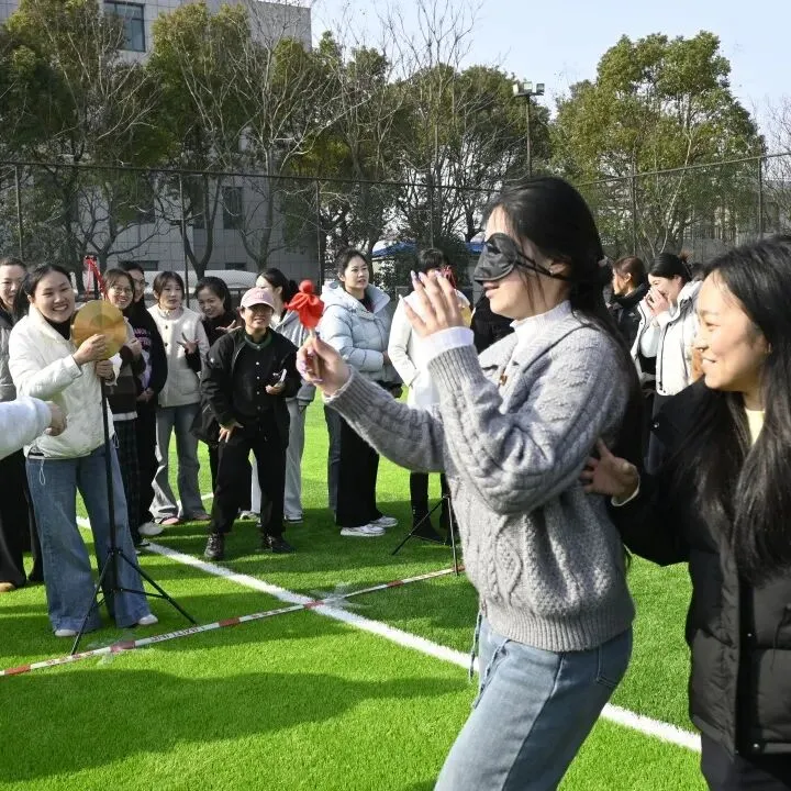 本次运动会紧扣节日主题,融合趣味性与协作性,精心设置了“力拔山河”“蒙眼敲锣”“四平八稳”“套大鹅”“齐力跳绳”五大竞技项目。比赛现场气氛热烈,加油声、欢呼声此起彼伏。参赛女职工们精神饱满、配合默契,既比拼速度与技巧,也展现了智慧与协作,充分将团队精神融入每一个环节。