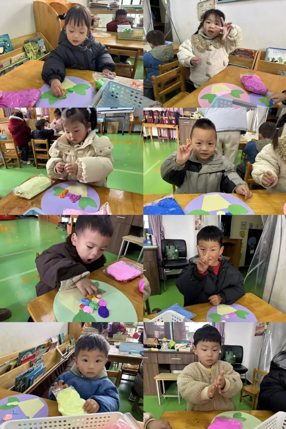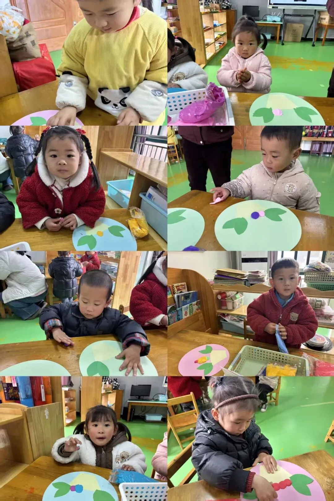 小班的宝贝们用纯真心意,向妈妈传递爱意。他们拿自己的小手用黏土搓出了一盆盆花篮,色彩缤纷的礼物承载着温柔祝福。
