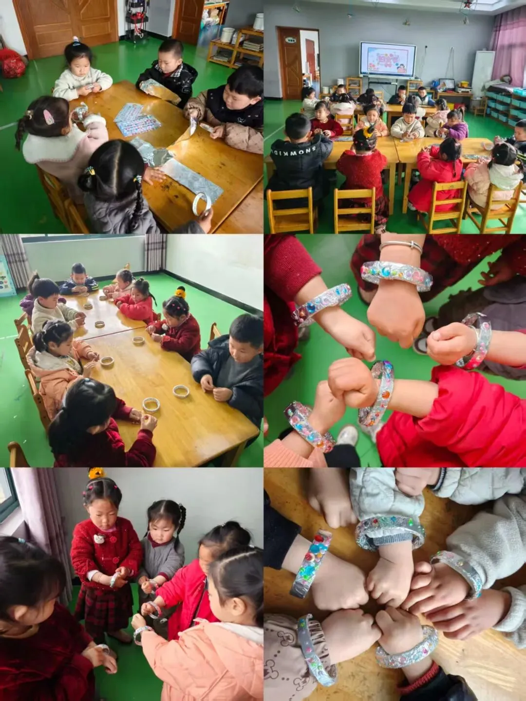 中班的宝贝们用稚嫩小手粘贴手镯上的“钻石”、点缀色彩,每一处都藏着对妈妈的爱。这些缀满"钻石"的手镯,是宝贝们最真挚的告白。