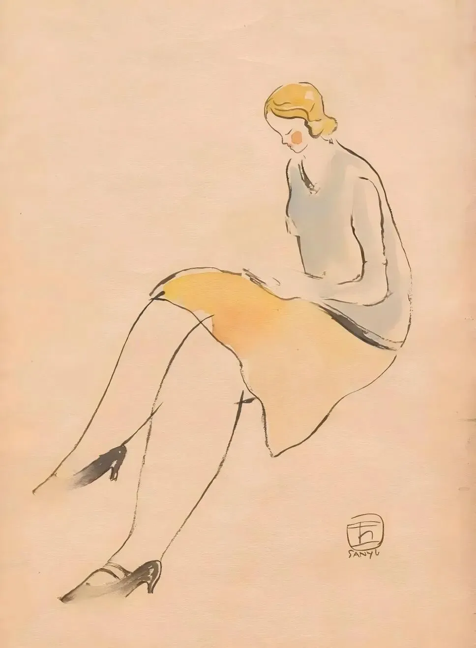 20年代,巴黎。常玉的画笔是粉色的。那时他画裸女,好像并不多——更多是《阅读的女子》《坐姿的女子》这类肖像:穿着衣服的女人,低头看书或安静端坐,面容温柔、姿态娴雅。她们是具体的某个人,有身份,有情绪,有生活气息。色彩是丰富的,粉红、淡黄、浅白,铺满画布,像巴黎午后的一杯咖啡,温热而甜美;像糖果一样包裹着巴黎的阳光。画里没有痛苦,只有对世界的好奇。这时的裸女还不是主角,只是他快乐的背景板。