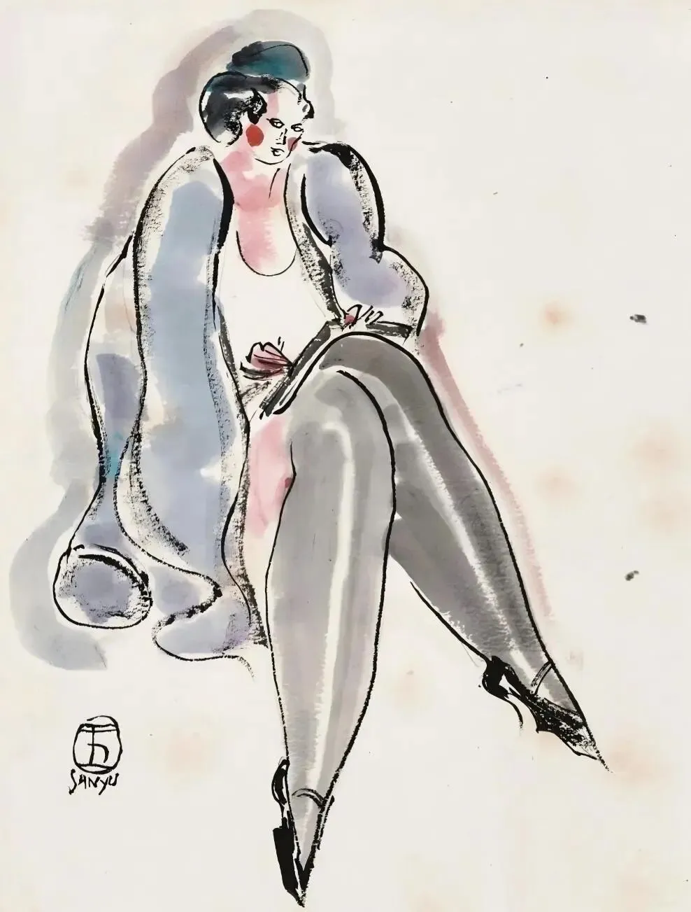 常玉用近六十年走过了这座桥。从巴黎咖啡馆里画着粉红肖像的富家子,到阁楼上用黑线勾勒裸女的孤独老人——他最终褪去了所有外在的包裹,抵达了那座桥的尽头。那里没有模特,没有色彩,只有一支笔,和一具终于诚实的身体。